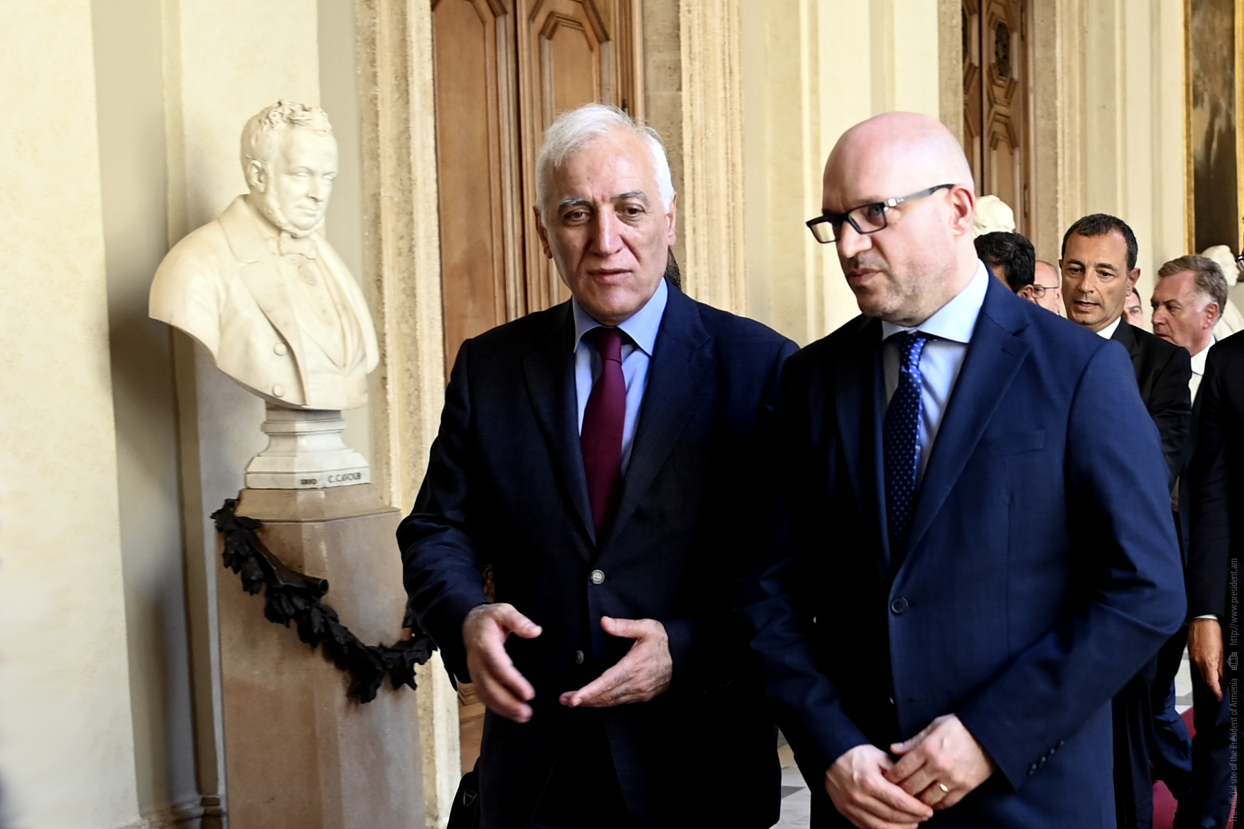 Welcoming President Khachaturyan, Lorenzo Fontana noted, "Welcome Mr. President. It is a great privilege for us to receive you. Our countries have historical and cultural friendly relations and there is a desire to bring them closer.