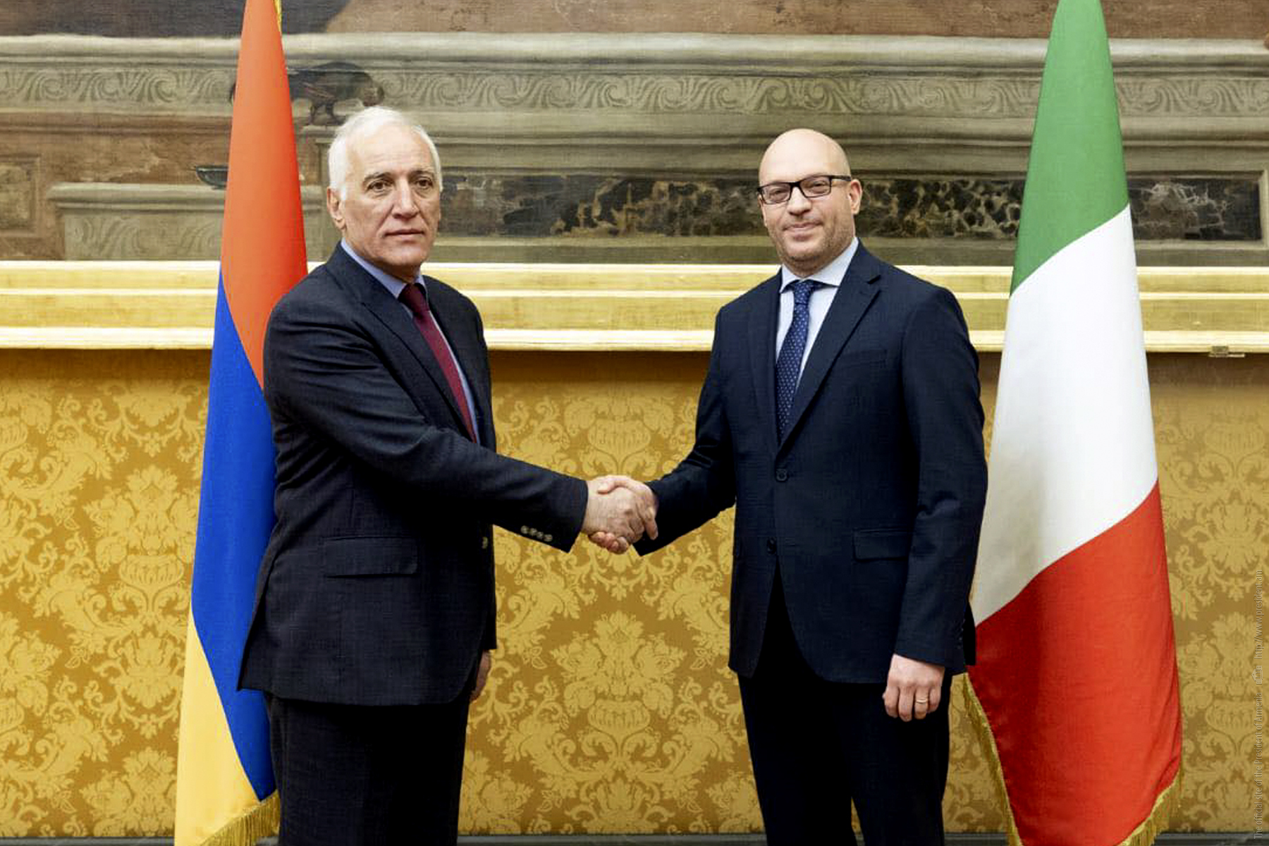 Expressing his gratitude for the reception, President Vahagn Khachaturyan noted, "We highly appreciate the work carried out by the Italian-Armenian parliamentary friendly group. We are currently on a rough path and unfortunately the difficulties are not yet overcome. However, our baseline is that we should live peacefully with our neighbors and this is the position of Armenia. Of course, a lot depends on the neighbors to achieve final peace, and it is precisely on this account that countries like Italy can support the establishment of sustainable and lasting peace in our region."