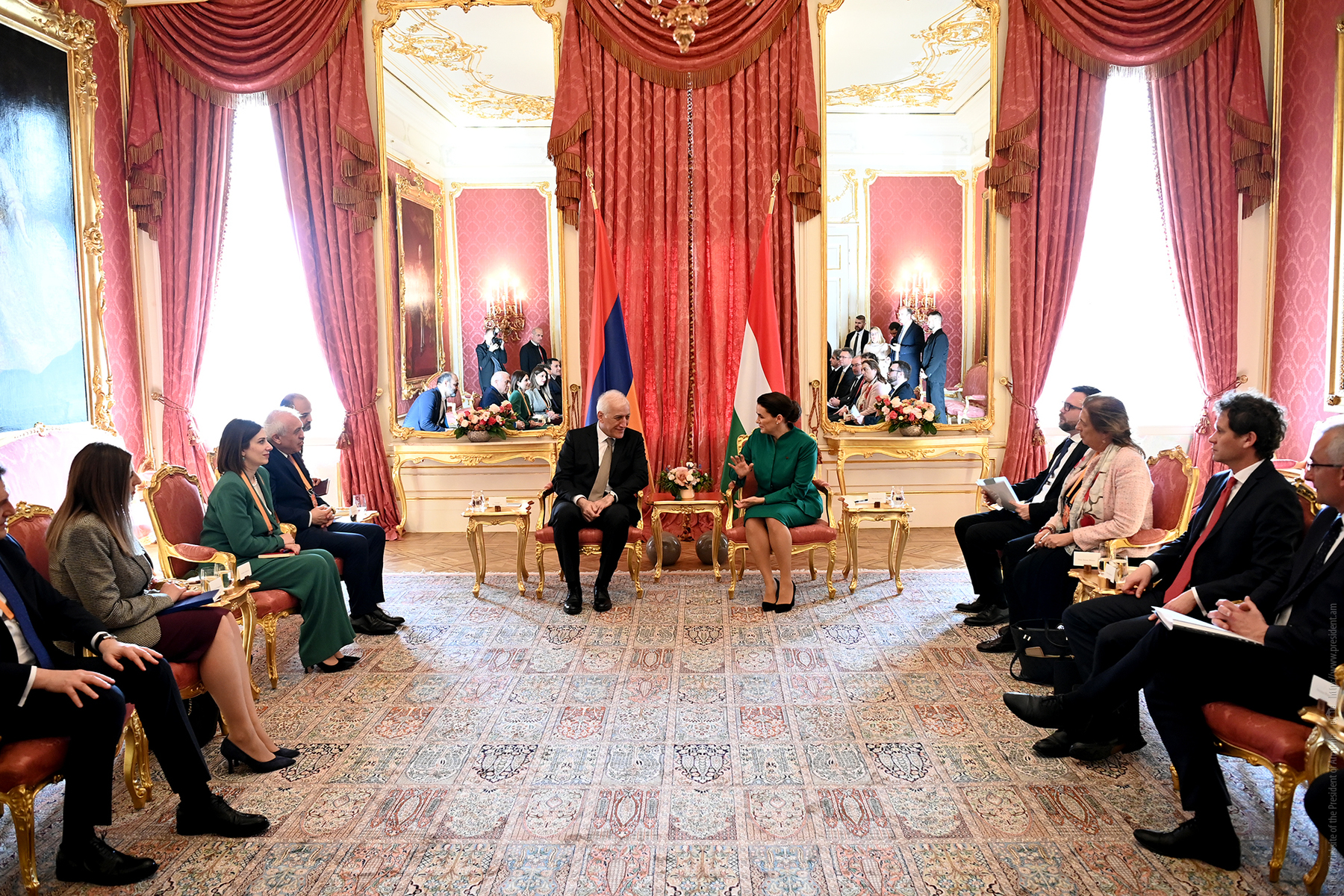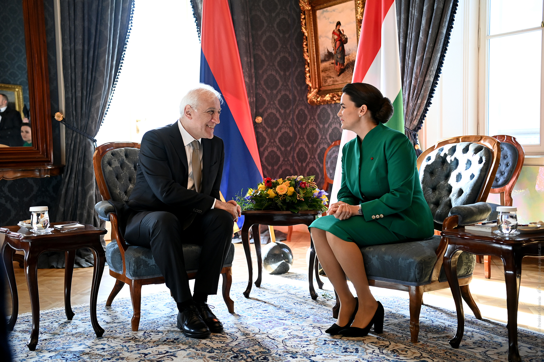 Presidents Vahagn Khachaturyan and Katalin Novák had a private conversation at the Presidential Residence of Hungary, followed by a plenary session of the delegations in an expanded format.