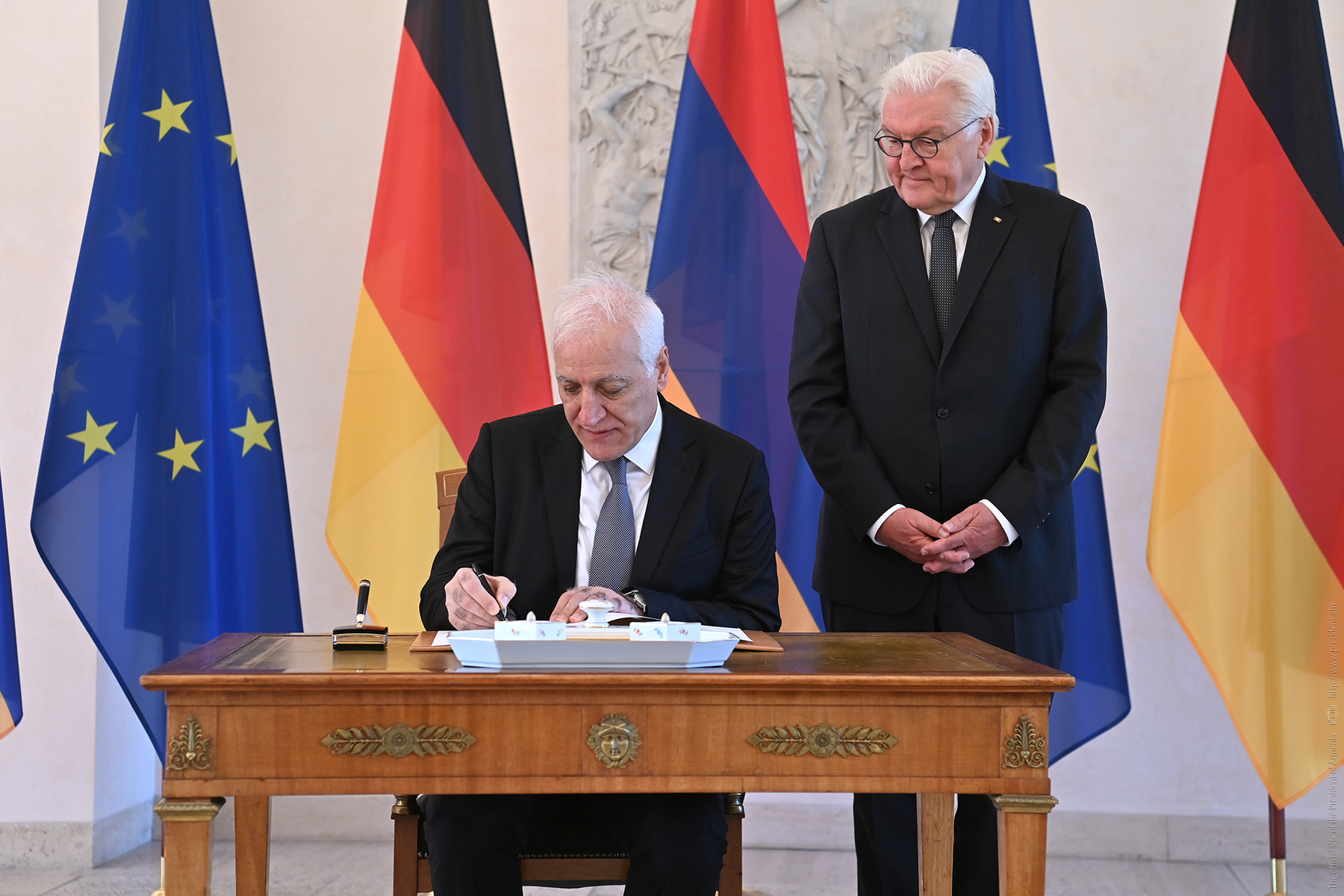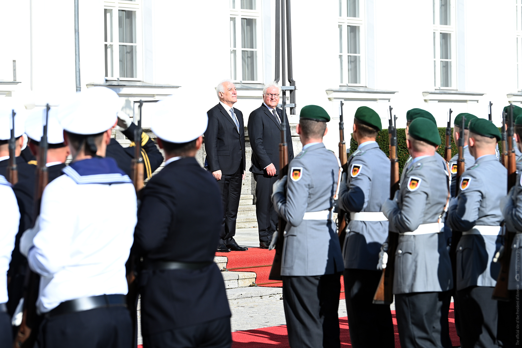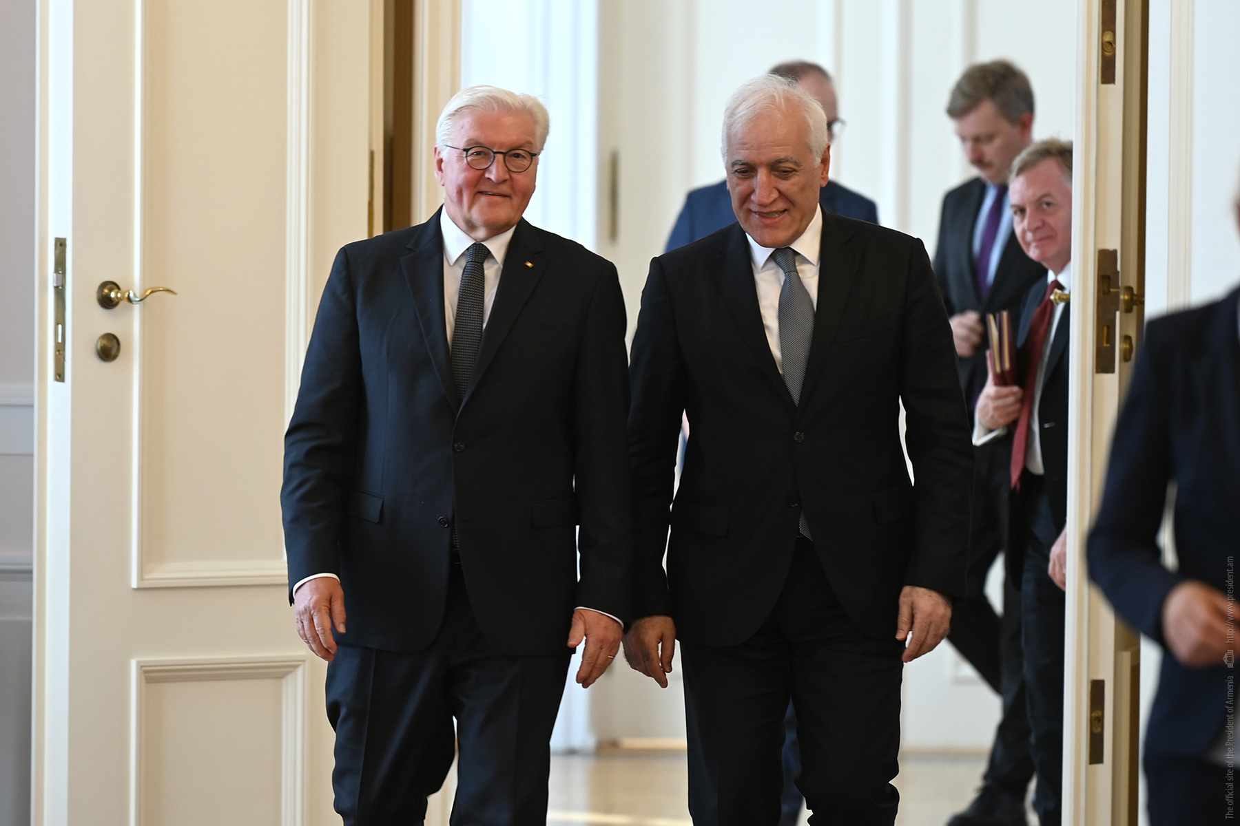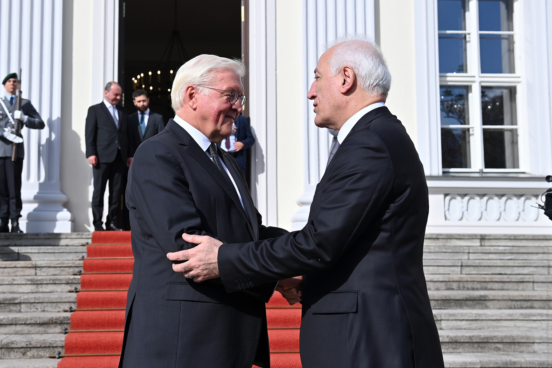 A solemn welcoming ceremony of the President of the Republic of Armenia took place at the Presidential Residence of Germany, followed by a meeting between Presidents Vahagn Khachaturyan and Frank-Walter Steinmeier.