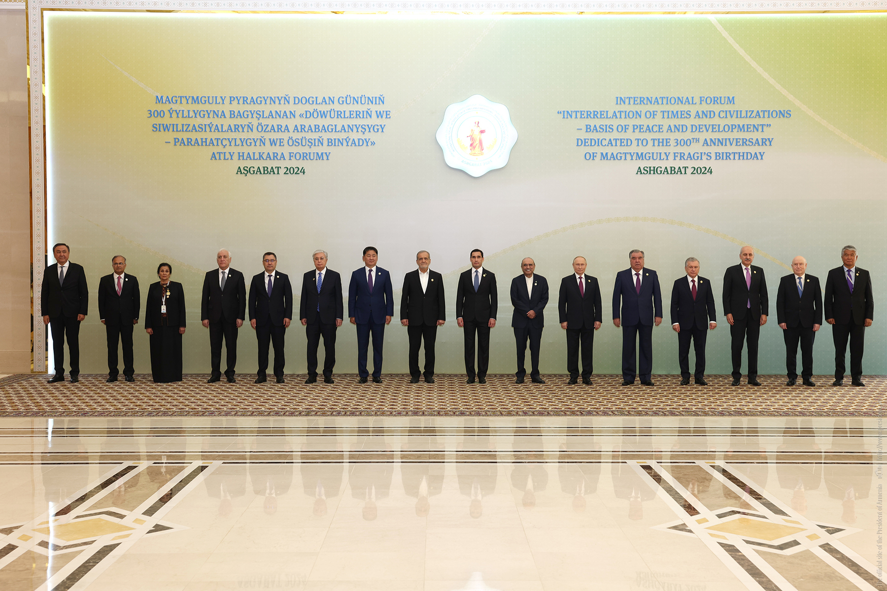 President of the Republic Vahagn Khachaturyan participated in the international forum of heads of State and Government in Ashgabat titled "Interrelation of Times and Civilizations – Basis of Peace and Development," dedicated to the 300th anniversary of Magtymguly Fragi, and delivered a speech.
