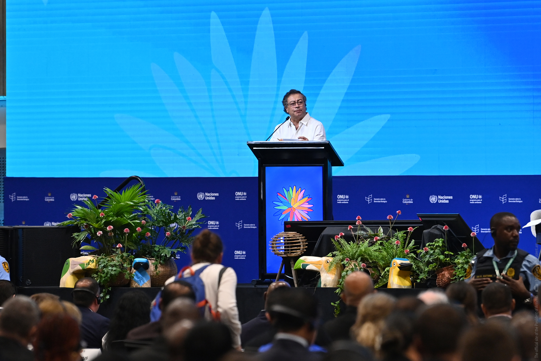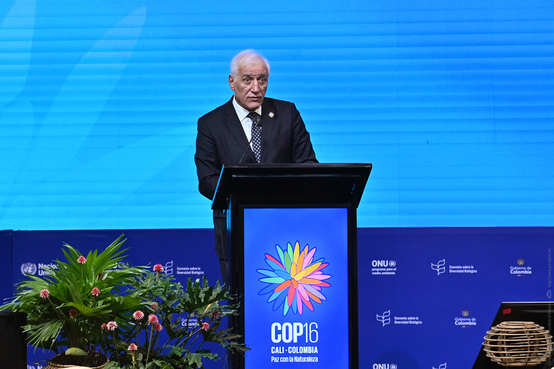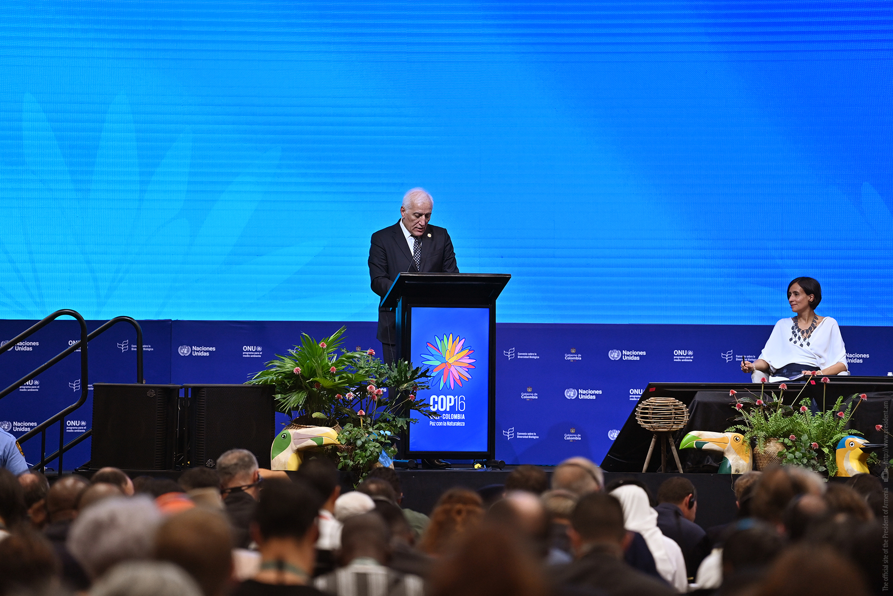 As part of his working visit to Colombia, President Vahagn Khachaturyan attended the official opening of the high-level segment at the 16th Conference of the Parties to the Convention on Biological Diversity in Cali and delivered a speech. During the event, speeches were also given by President of Colombia Gustavo Petro and UN Secretary-General Antonio Guterres.