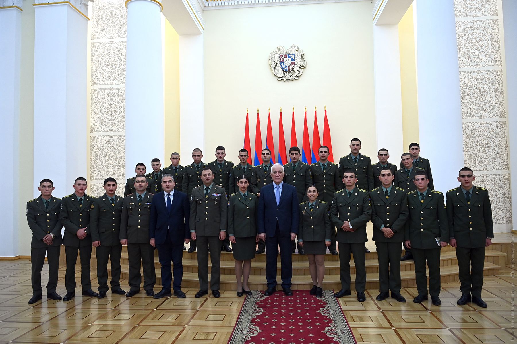 Accompanied by Samvel Movsisyan, Director of the "Leadership School" Foundation, Arsen Mangasaryan, Head of the Vazgen Sargsyan Military Academy, and lecturer Arkadik Tovmasyan, a group of cadets from the Military Academy visited the Presidential Residence and met with President Vahagn Khachaturyan.