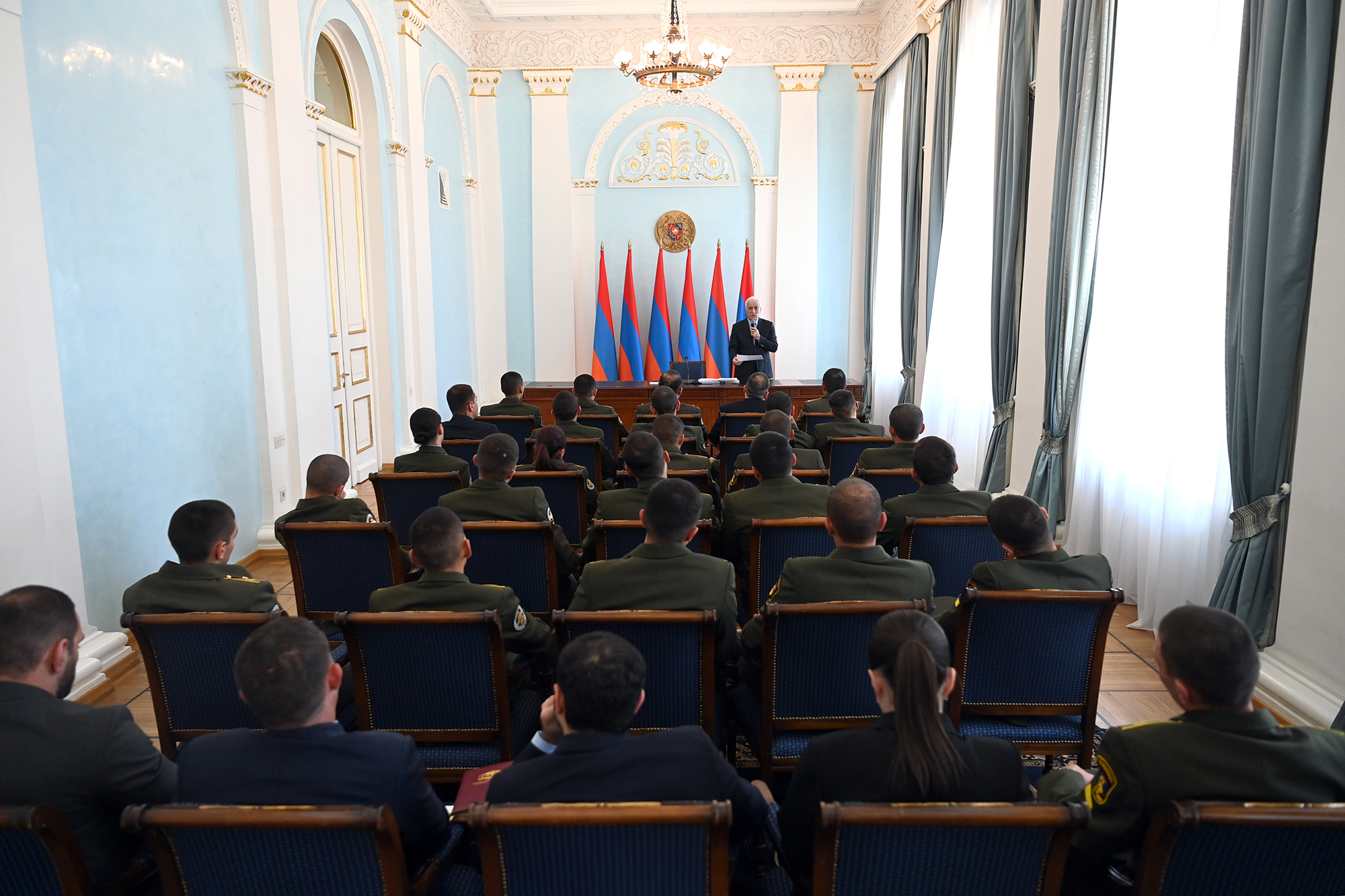 In his lecture, the President touched on the special role of the armed forces and higher military education in the state structure and discussed the importance of army reform principles. He emphasized the establishment of the Military Academy as a significant step in strengthening the Armenian armed forces by contributing to the training and staffing of officers.