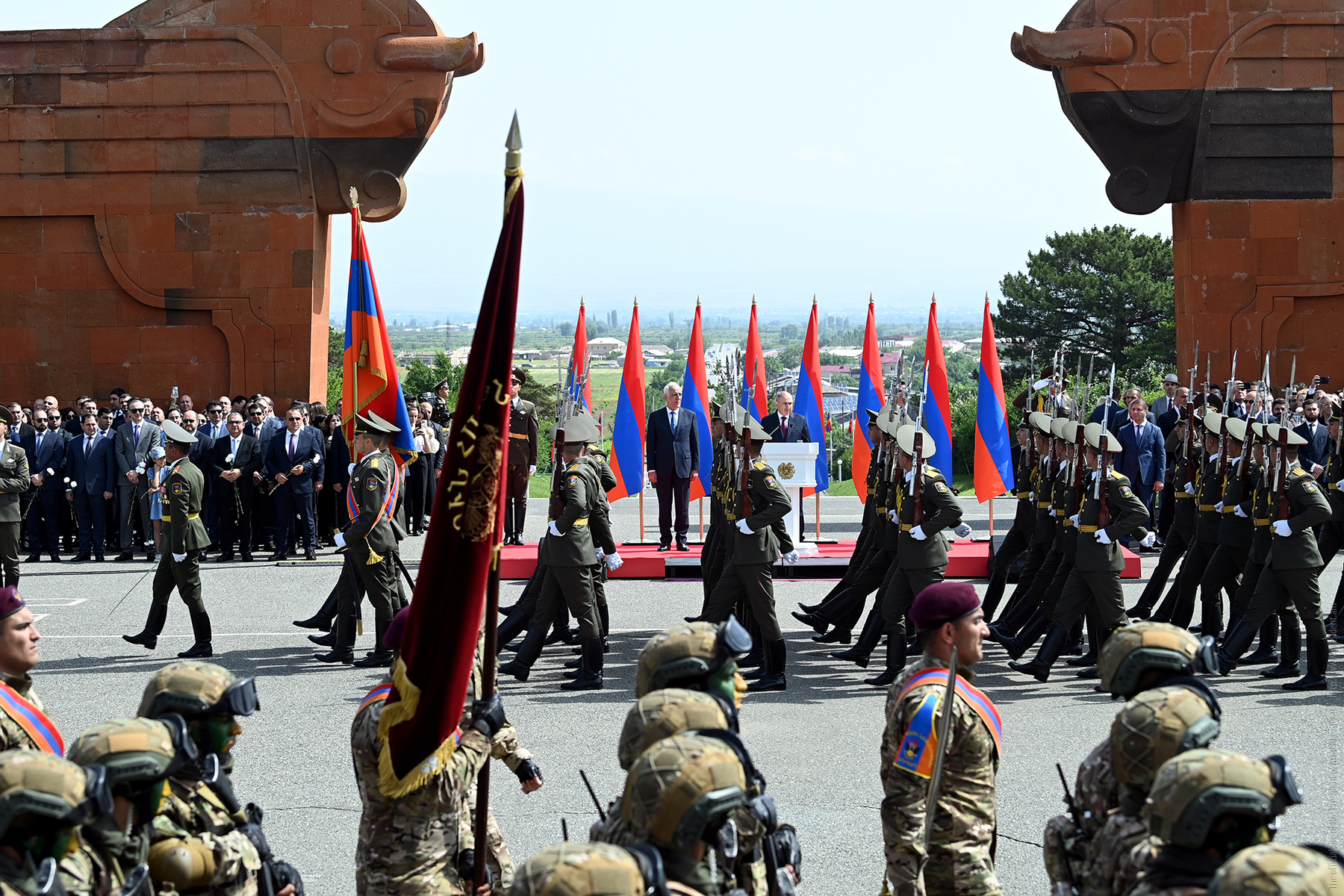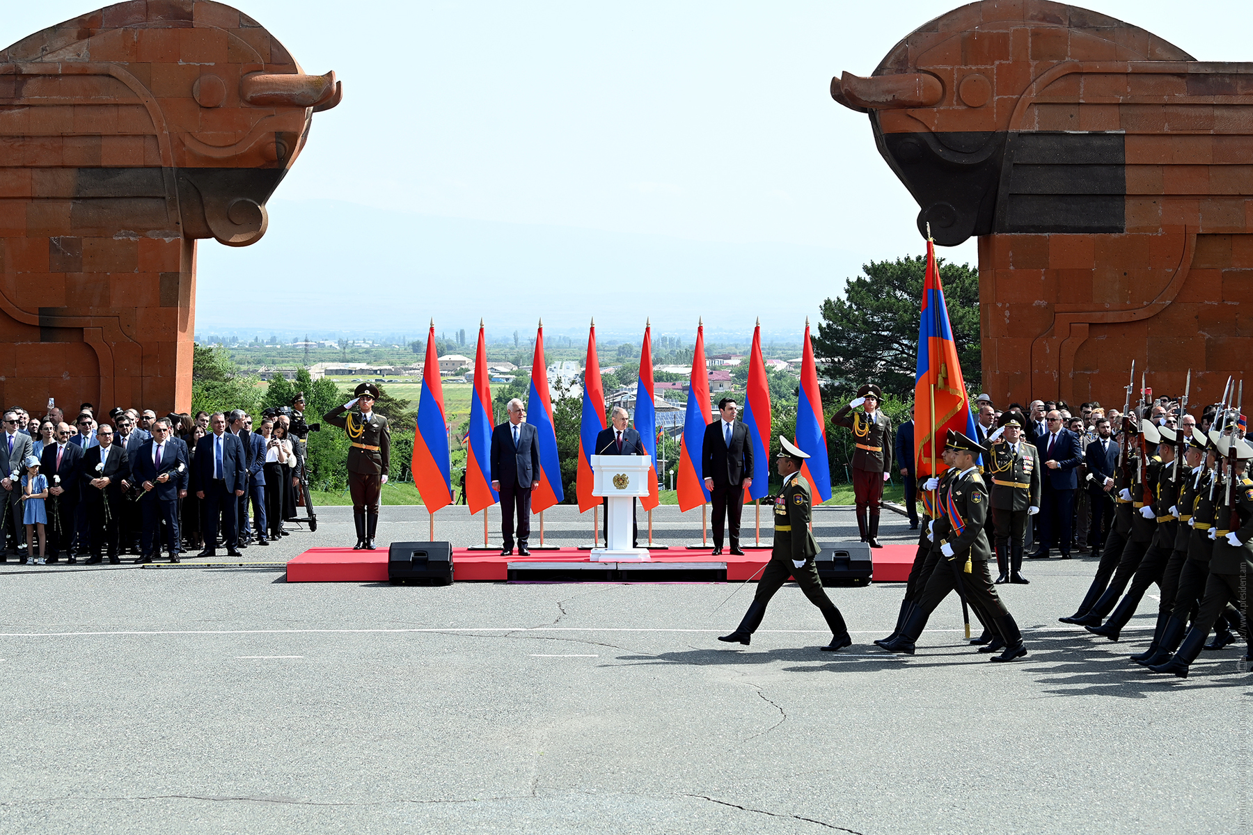 On the occasion of Republic Day, President Vahagn Khachaturyan, together with Prime Minister Nikol Pashinyan, President of the National Assembly Alen Simonyan, top leadership of Armenia, and representatives of diplomatic missions accredited in the country, visited the Sardarapat Memorial Complex.
