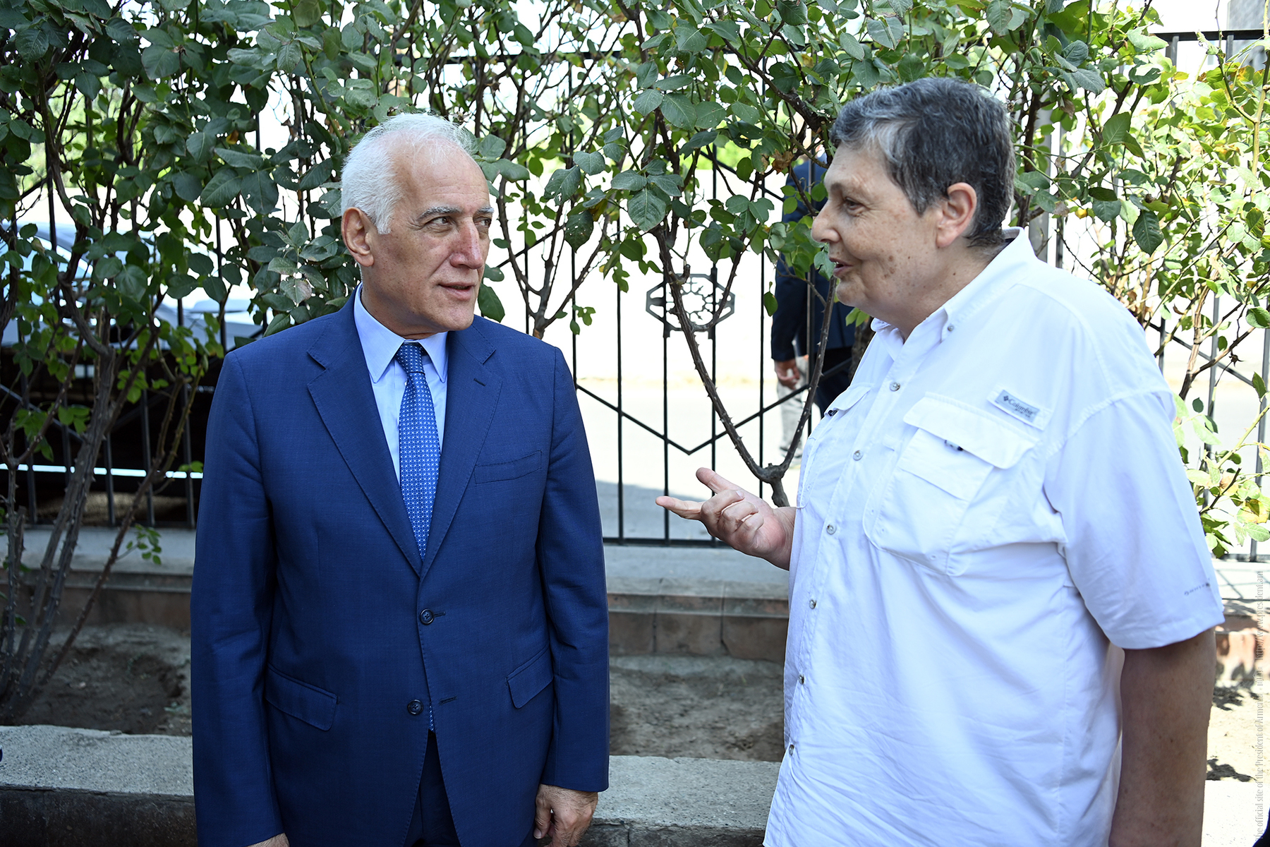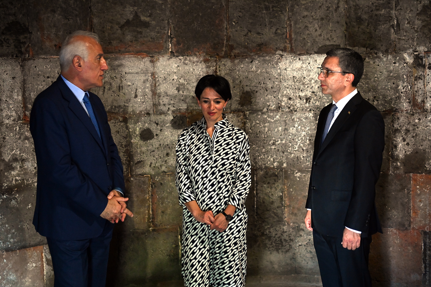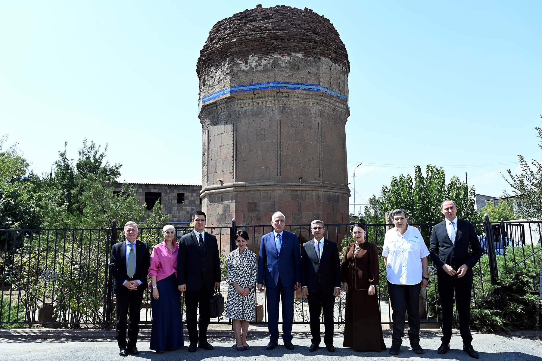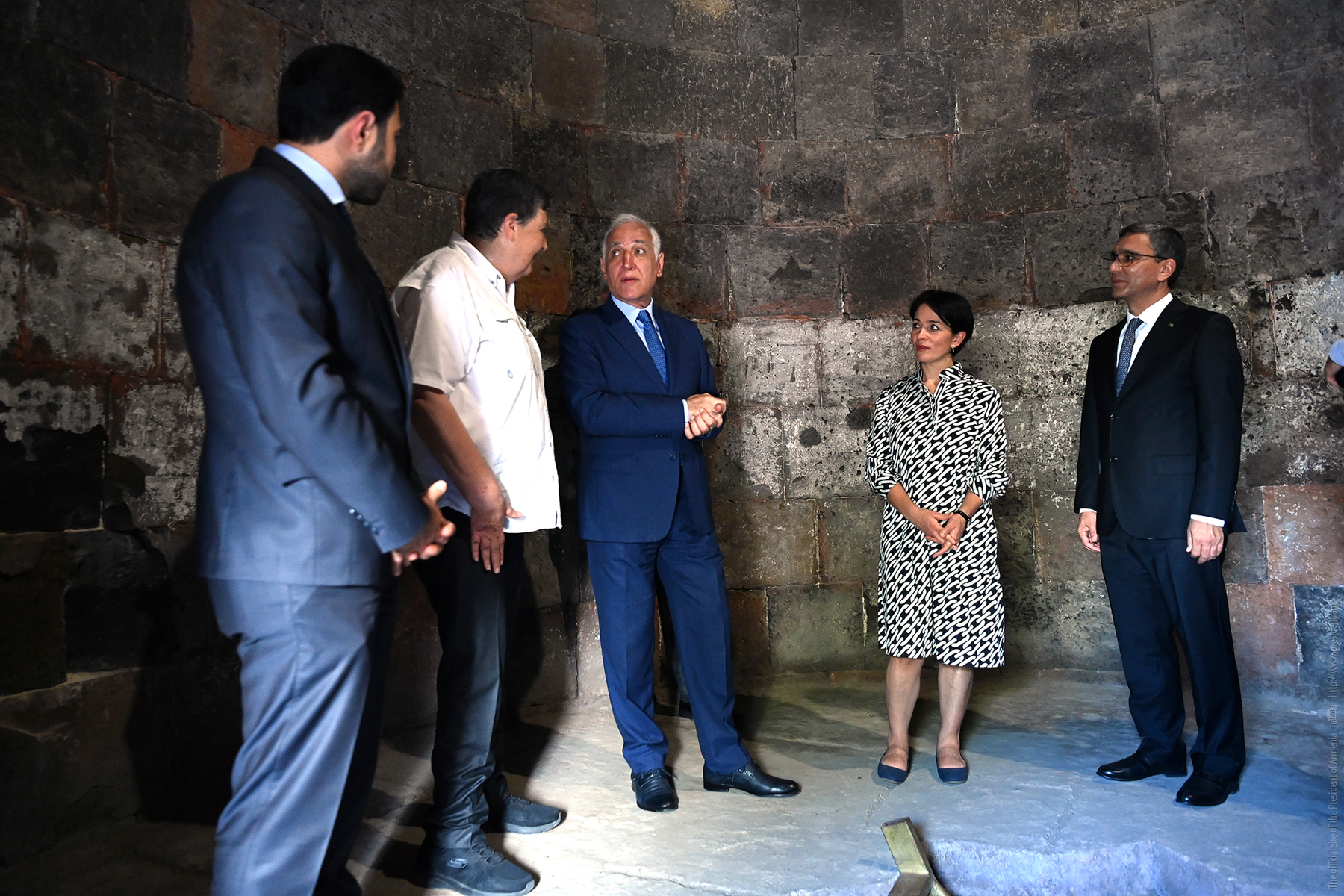 The President familiarized himself with the conditions of preservation of the historical and cultural monument. Minister Andreasyan informed the President that although restoration and improvement works have been carried out in different years at the site, there currently exists a project for the complete restoration of the monument and the improvement of the surrounding area.
