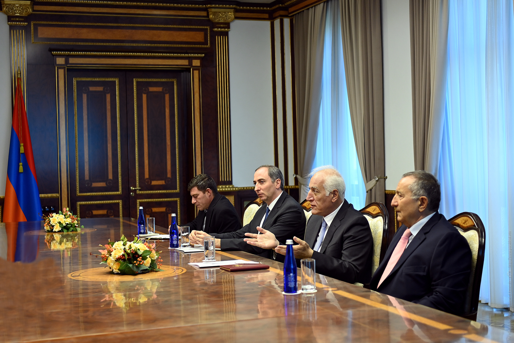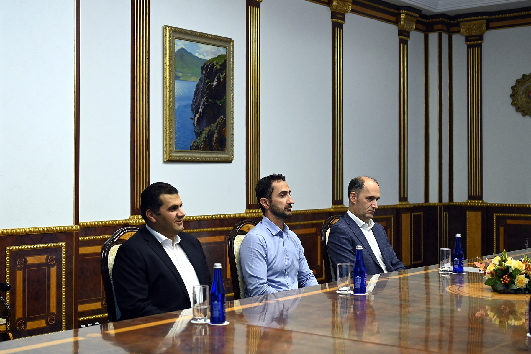 President of the Republic Vahagn Khachaturyan received the co-founders of EcoVille, a company operating in the field of alternative energy, Tigran Okhanyan and Vardan Hovsepyan, as well as Hayk Shekyan, founder and director of the Shtigen group of companies.