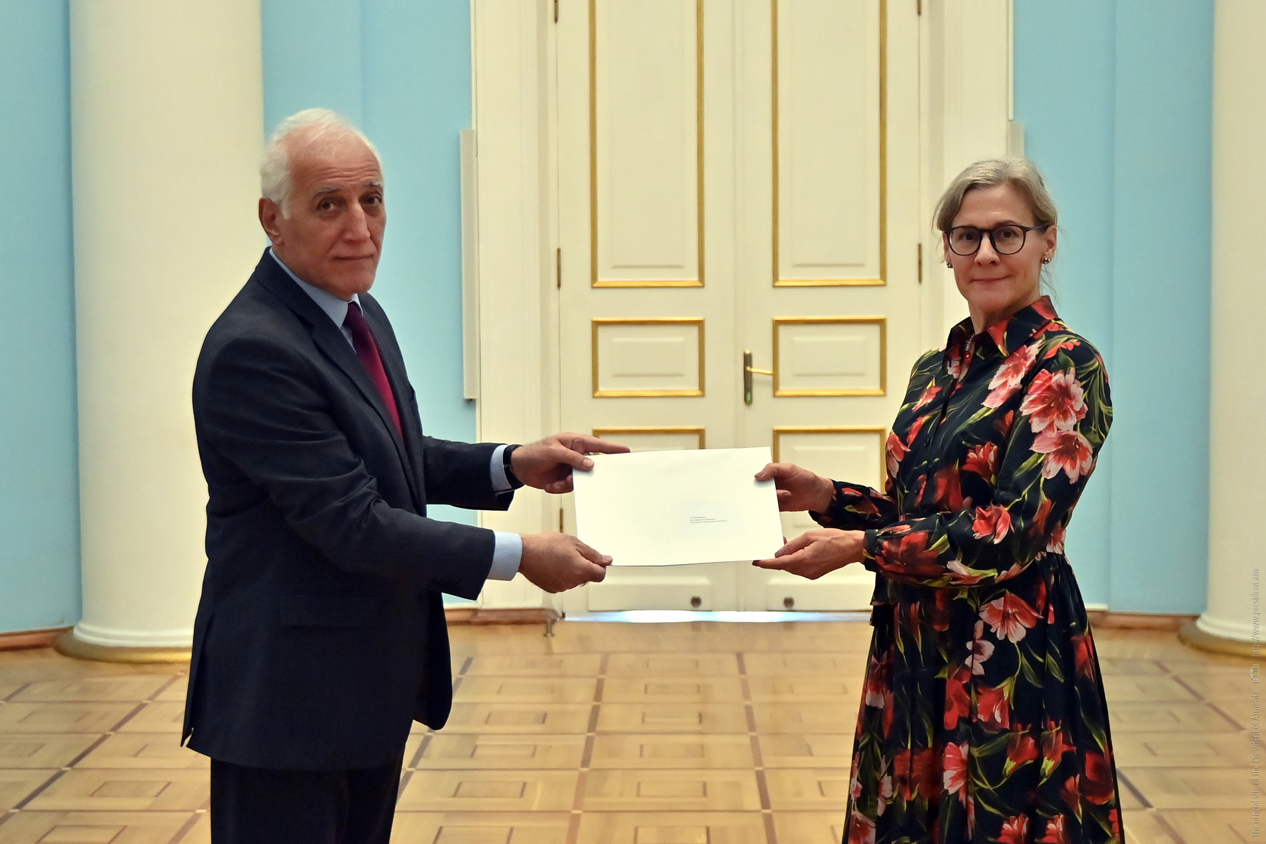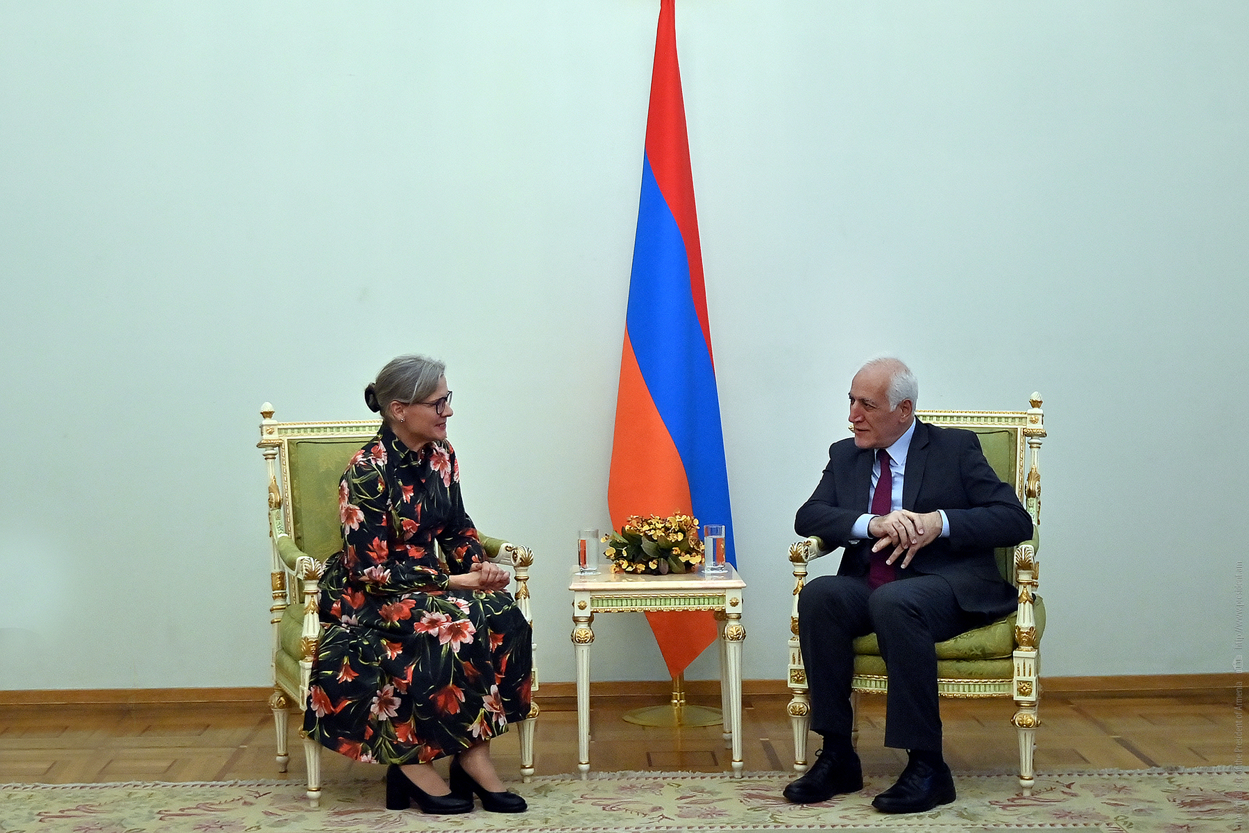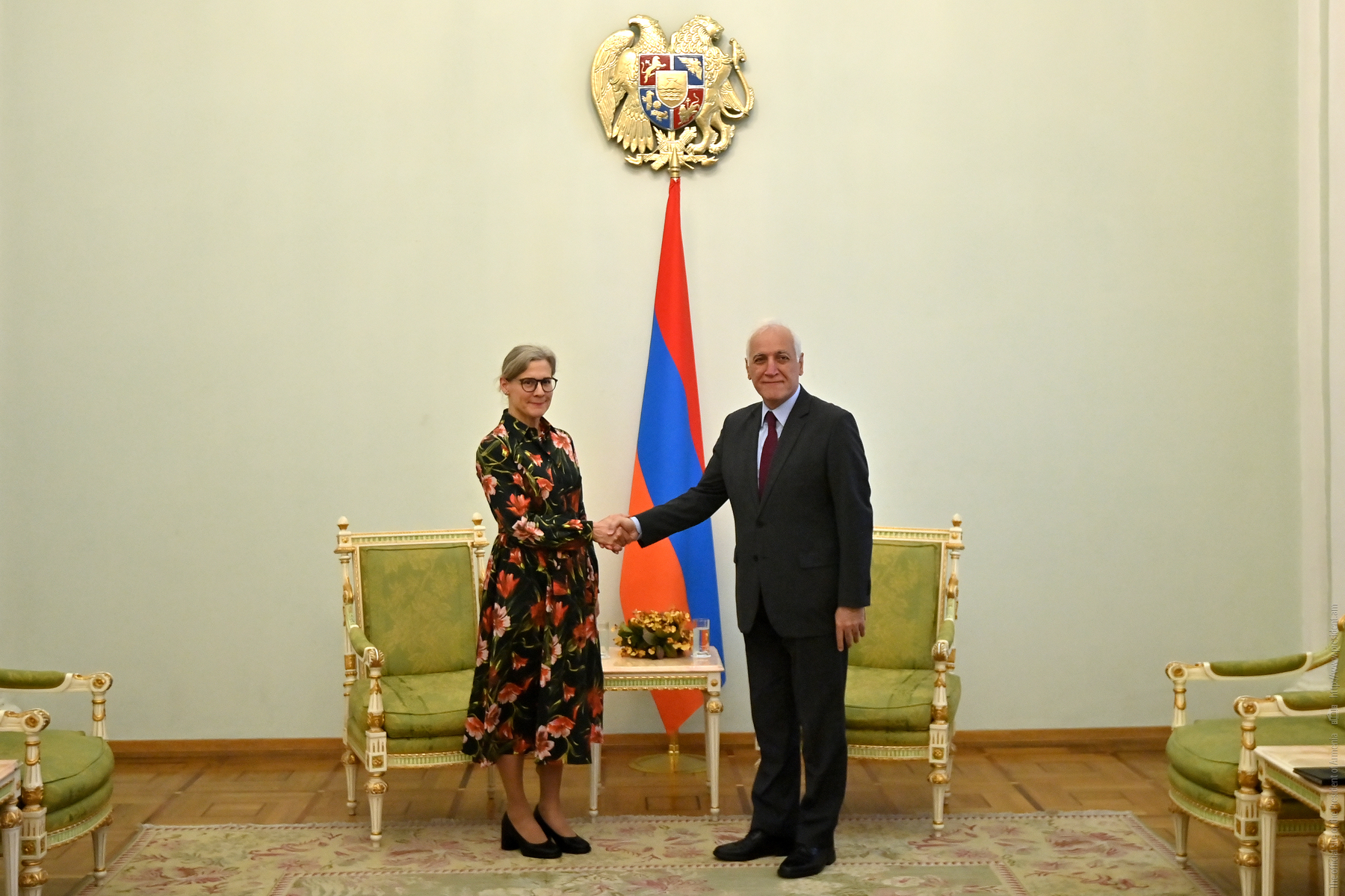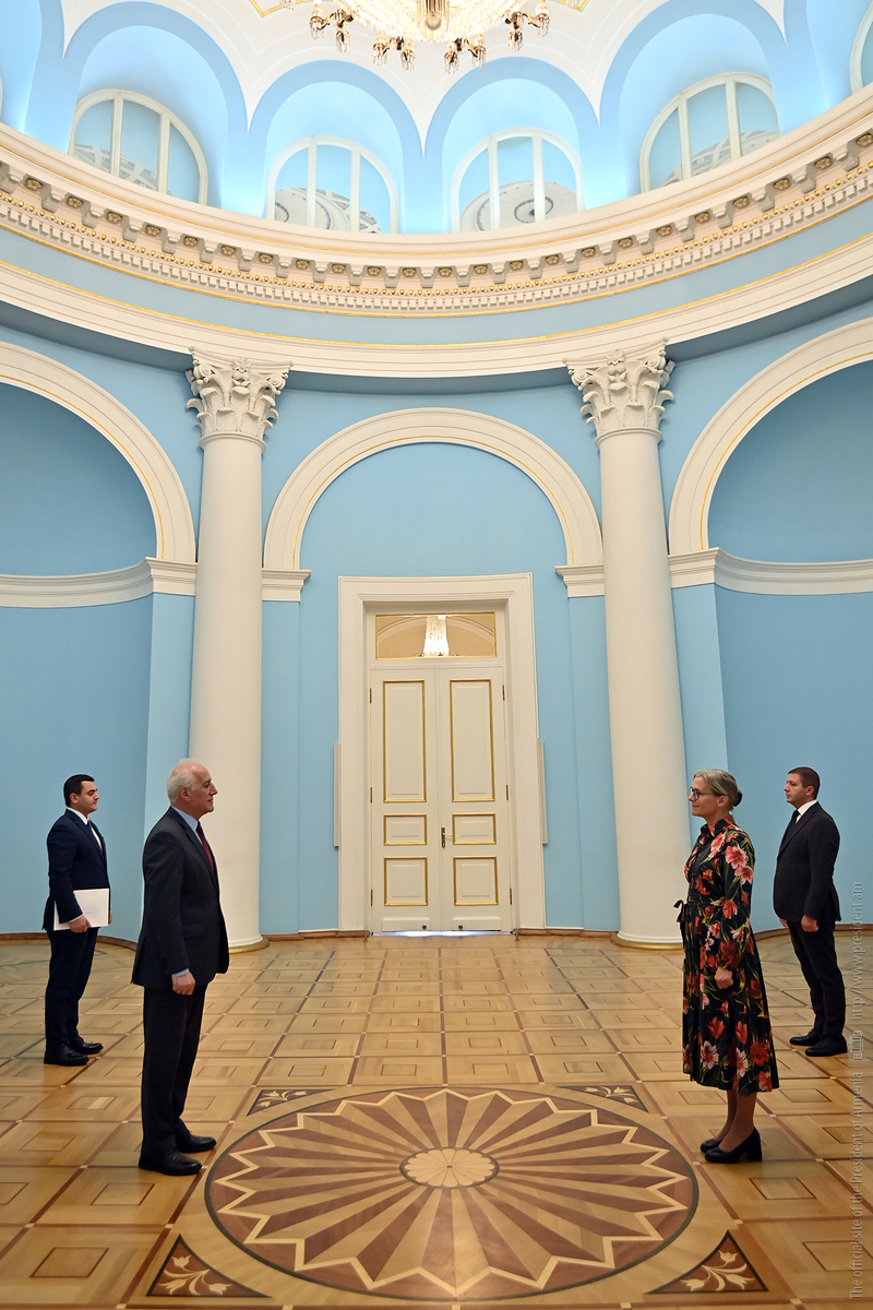 The newly appointed Ambassador Extraordinary and Plenipotentiary of Sweden to Armenia, Eva Sundqvist, presented her credentials to the President of the Republic, Vahagn Khachaturyan.