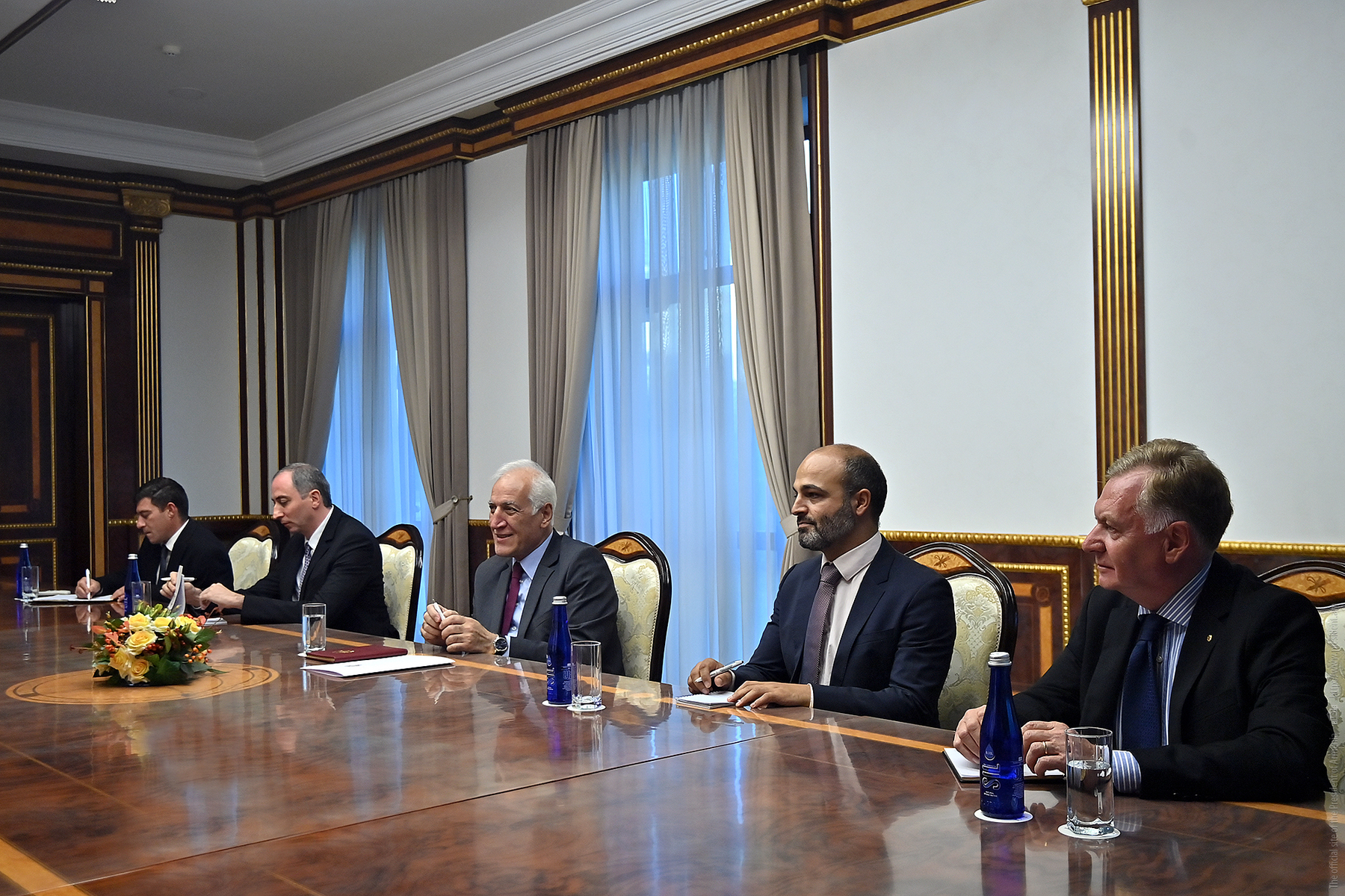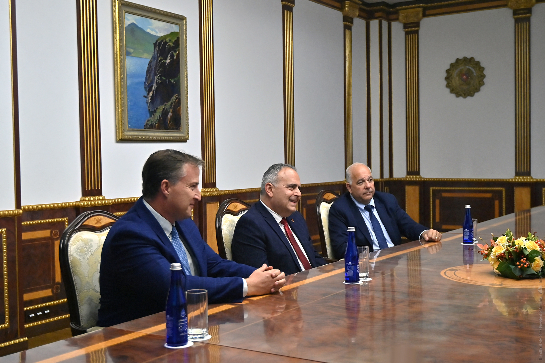 President of the Republic Vahagn Khachaturyan received the Executive Director of the Armenian Assembly of America, Bryan Ardouny, Co-Chair of the Board of Trustees Oscar Tatosian, and former Co-Chair of the Board of Trustees Anthony Barsamian.