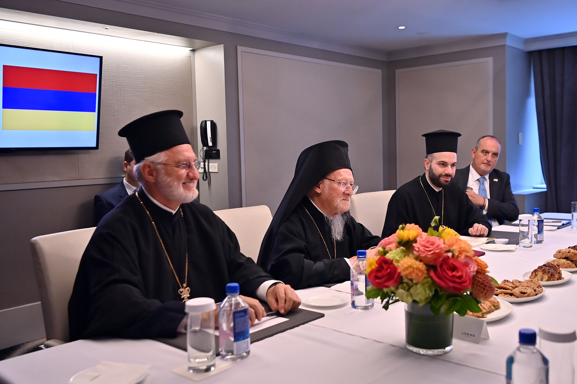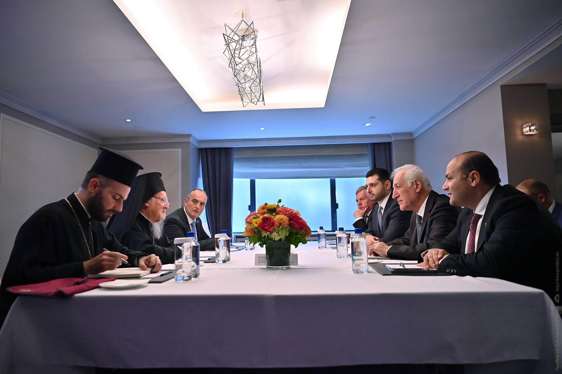 Within the framework of his working visit to New York, President of the Republic of Armenia Vahagn Khachaturyan held a meeting with His Holiness Archbishop of Constantinople and Ecumenical Patriarch Bartholomew I.
