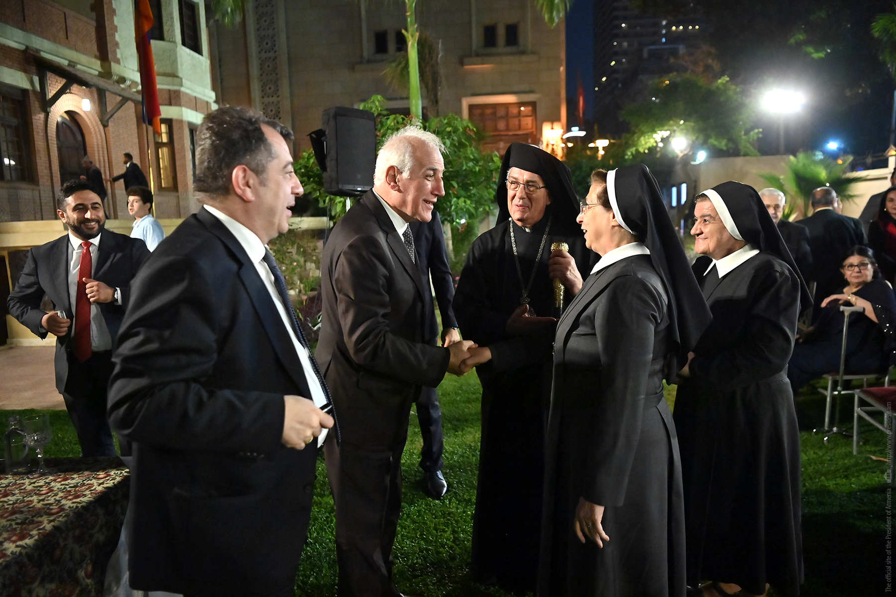 Within the framework of his working visit to Cairo, President of the Republic Vahagn Khachaturyan visited the Embassy of Armenia in Egypt, where he met with representatives of the Egyptian-Armenian community.