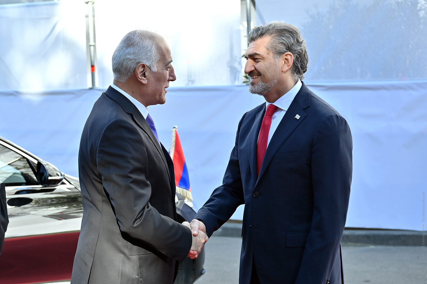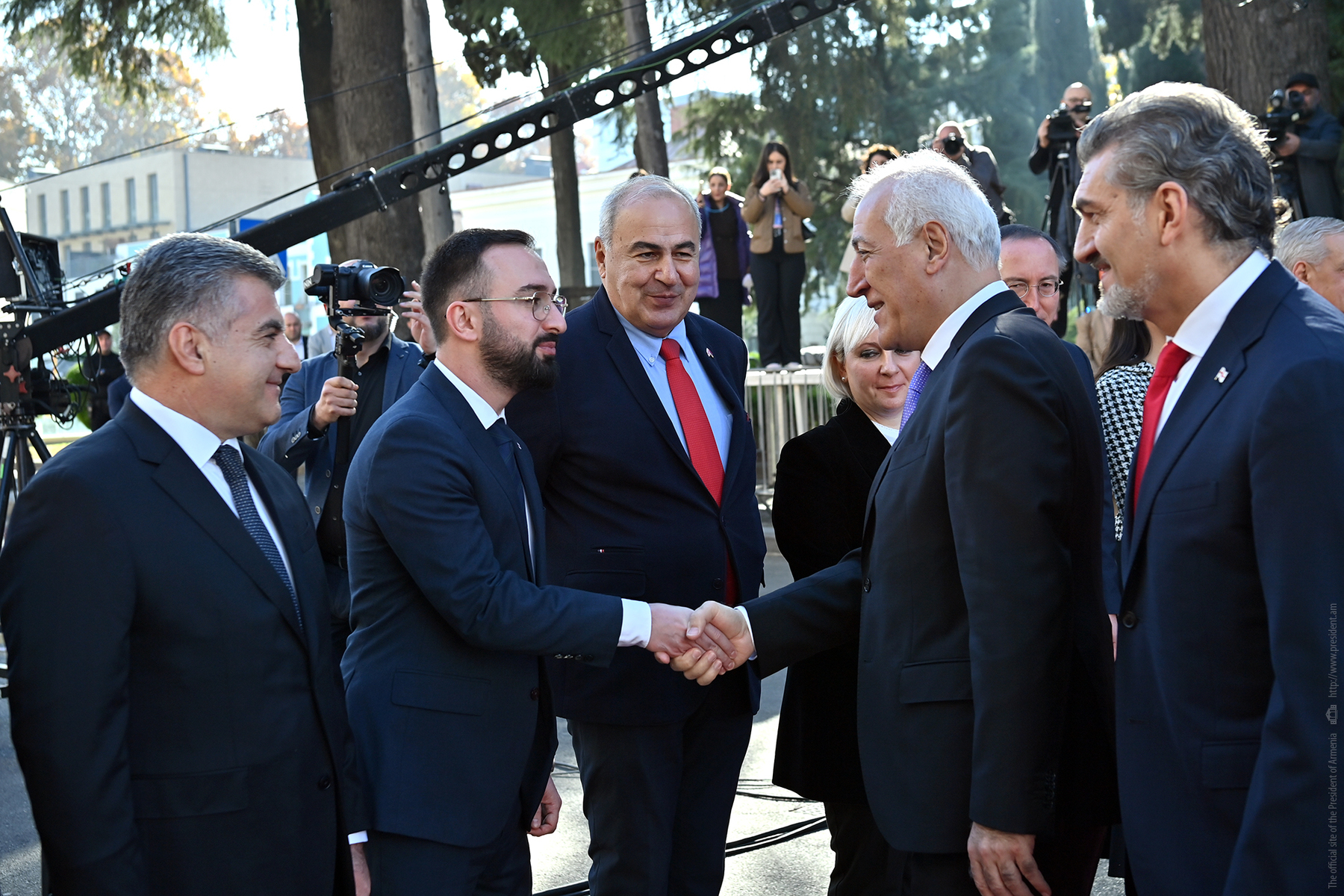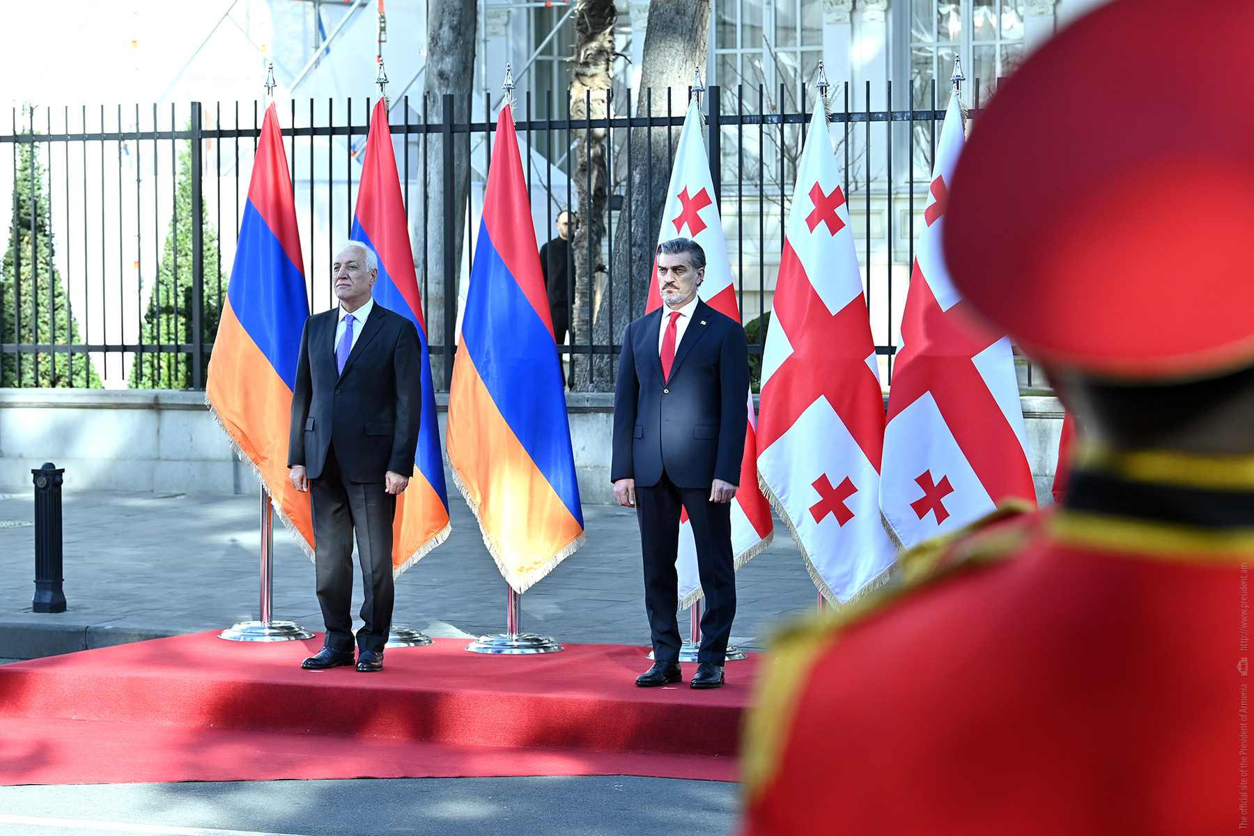 The welcoming ceremony was held for President Vahagn Khachaturyan, who arrived in Tbilisi on an official visit