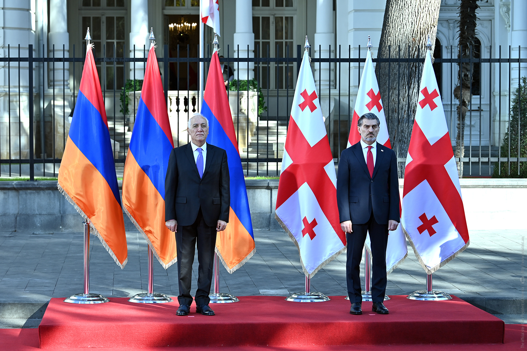At the Presidential Residence of Georgia, the welcoming ceremony was held for President of the Republic Vahagn Khachaturyan, who arrived in Tbilisi on an official visit.