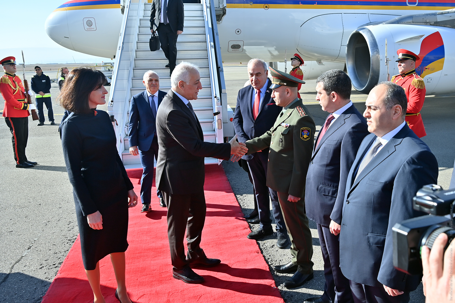 At the Shota Rustaveli International Airport, President Vahagn Khachaturyan was welcomed by Georgia’s Minister of Foreign Affairs Maka Botchorishvili, Head of the Administration of the President of Georgia Ketevan Kvinikadze, and Georgia’s Ambassador Extraordinary and Plenipotentiary to Armenia Giorgi Sharvashidze.