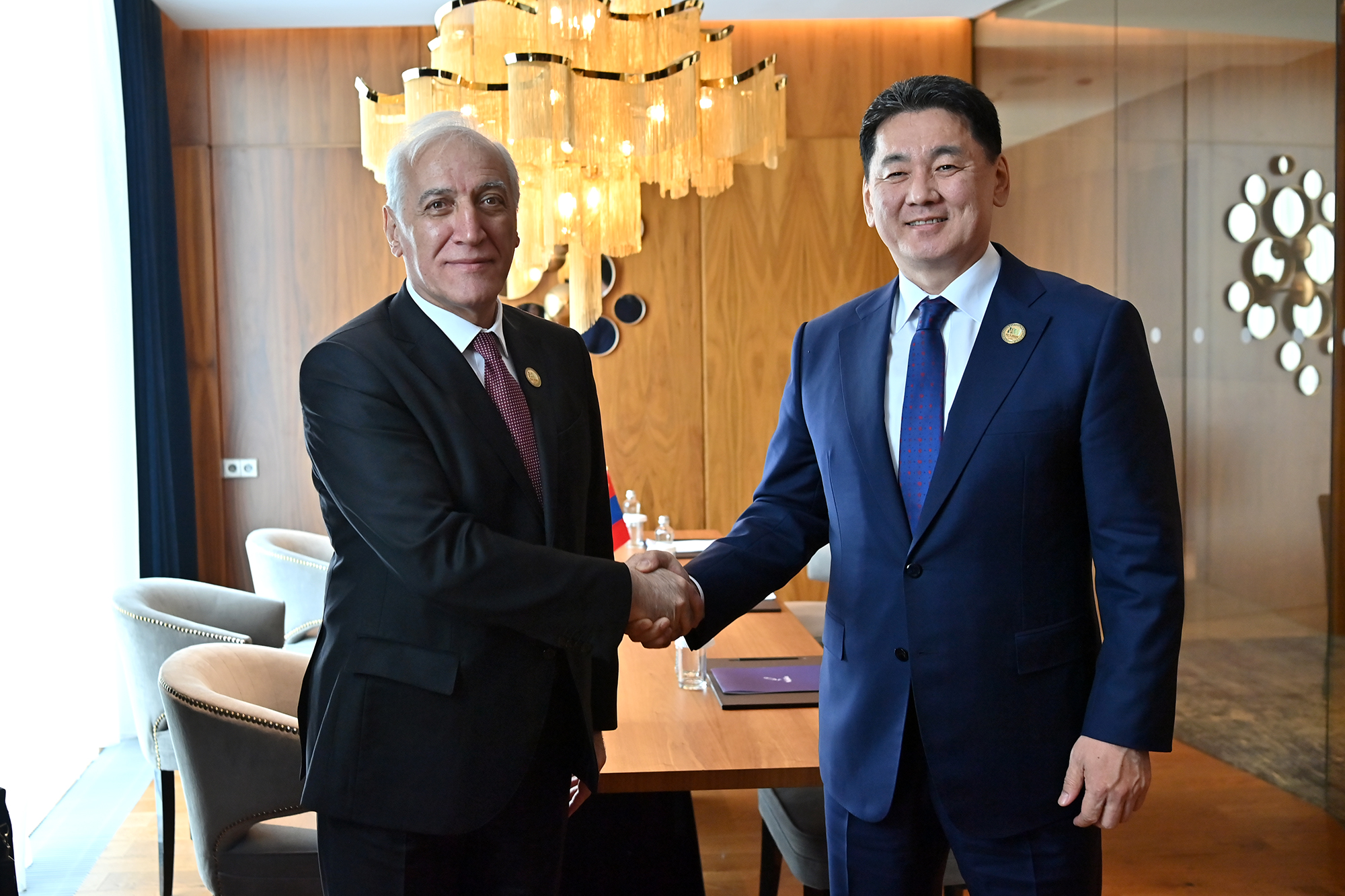 The President of the Republic, Vahagn Khachaturyan, met with the President of Mongolia, Ukhnaagiin Khurelsukh, within the framework of his working visit to Kazakhstan.