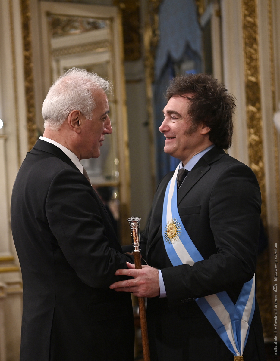Le Président de la République Vahagn Khatchatourian a participé à la cérémonie d'investiture du Président nouvellement élu de la République d'Argentine Javier Millay au palais présidentiel "Casa Rosada" à Buenos Aires.