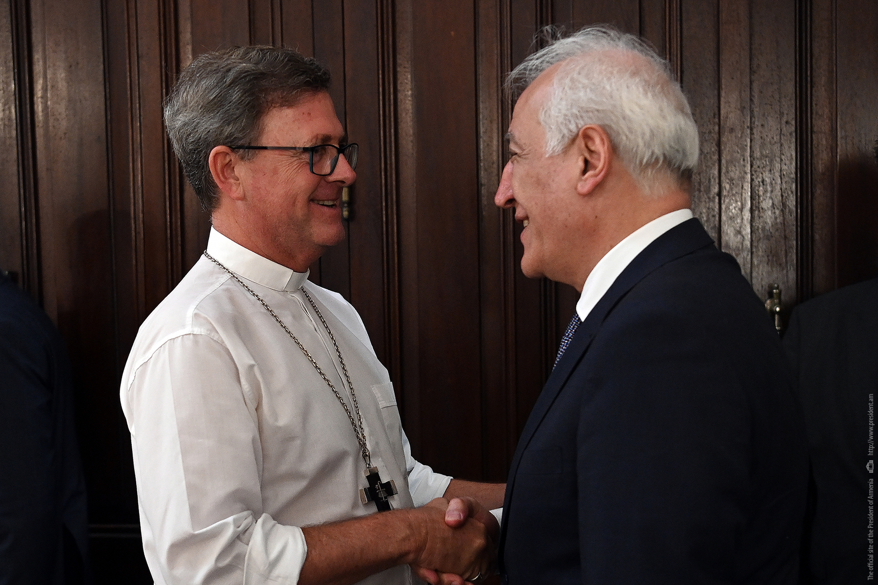 À la fin de la réunion, le Président Vahagn Khatchatourian a fait une visite de la cathédrale, s'est familiarisé avec l'histoire et le patrimoine culturel de la cathédrale, a visité la salle de l'Église apostolique arménienne, qui a été séparée à l'intérieur de la cathédrale.