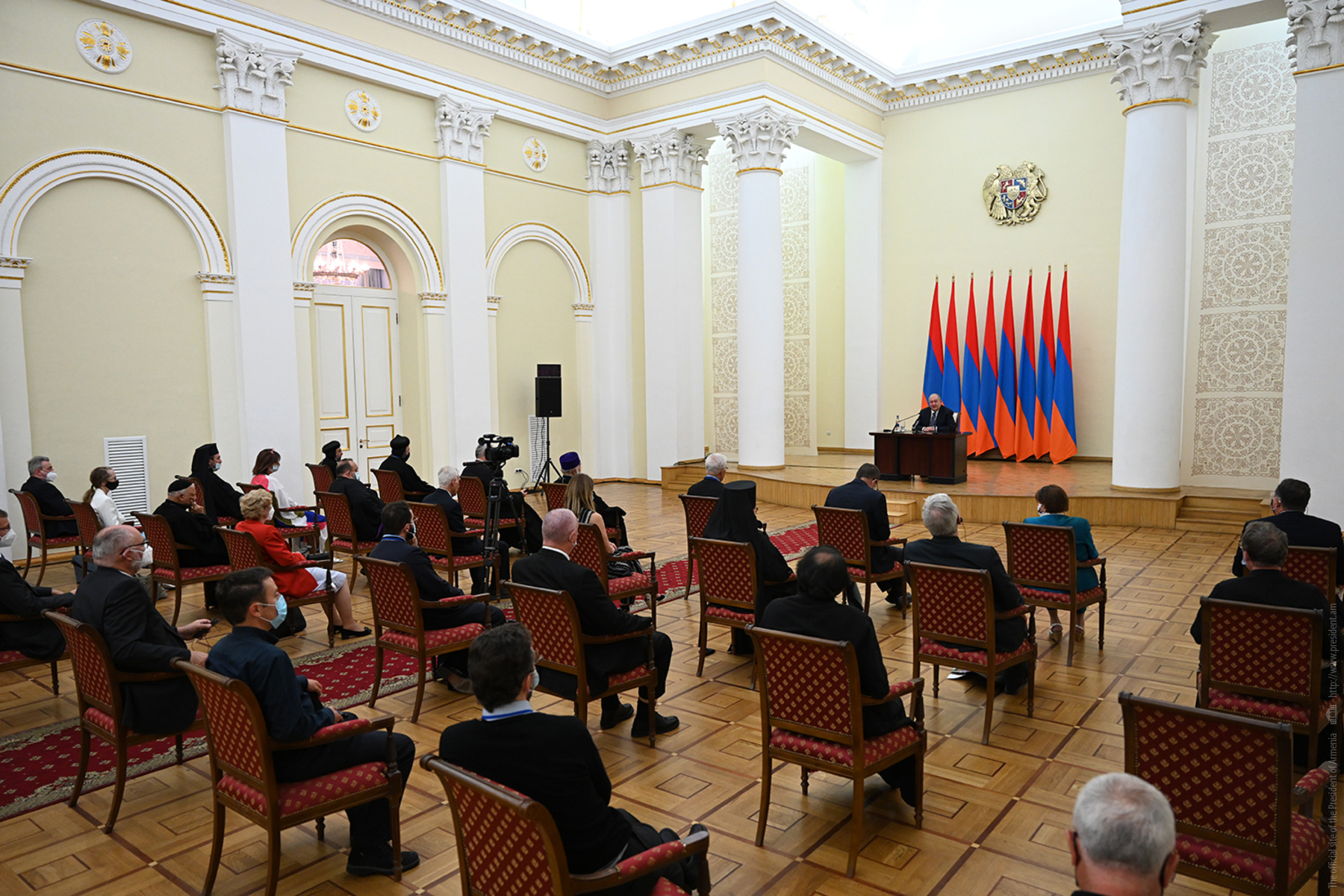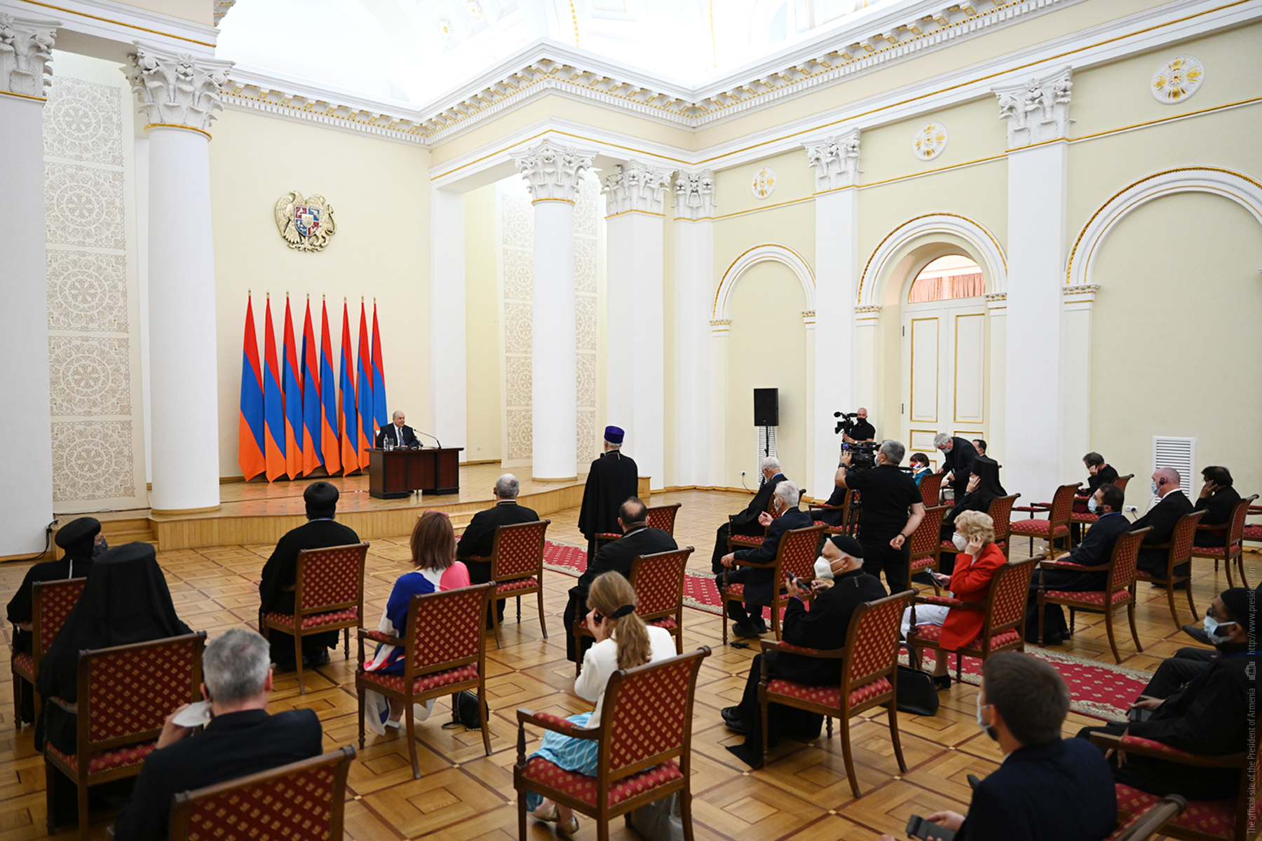 Le président Armen Sarkissian a accueilli à la résidence présidentielle les participants à la conférence internationale intitulée "Liberté religieuse internationale et paix", des représentants d'églises sœurs, d'organisations chrétiennes, des universitaires et des personnalités publiques de différents pays étaient invités.