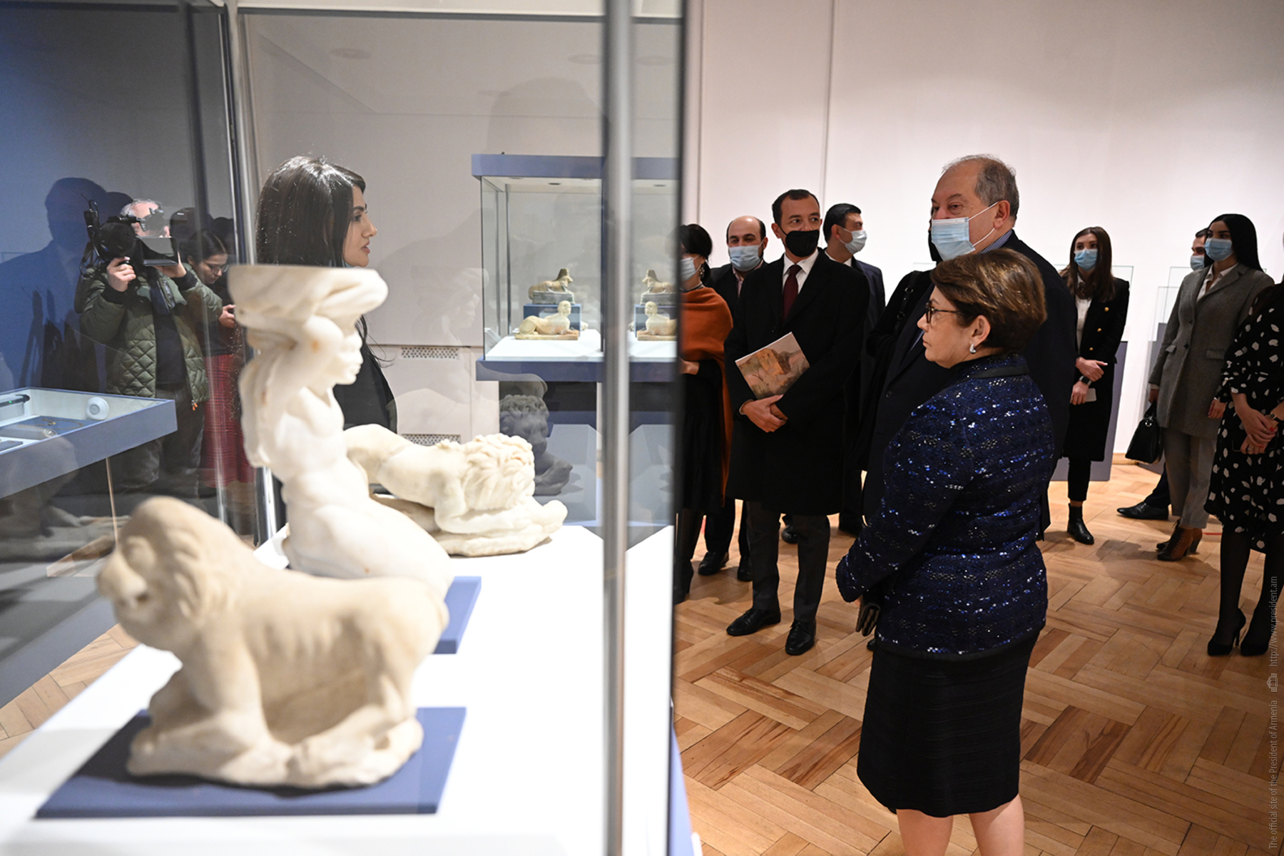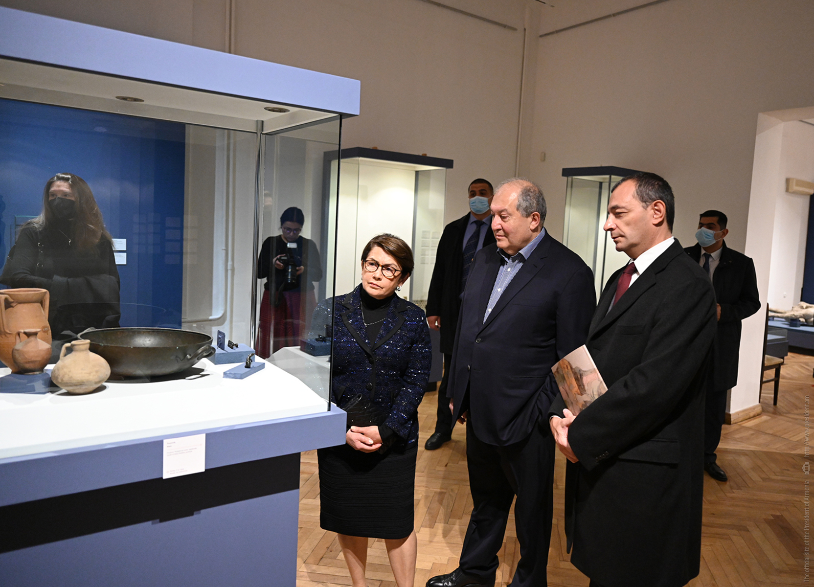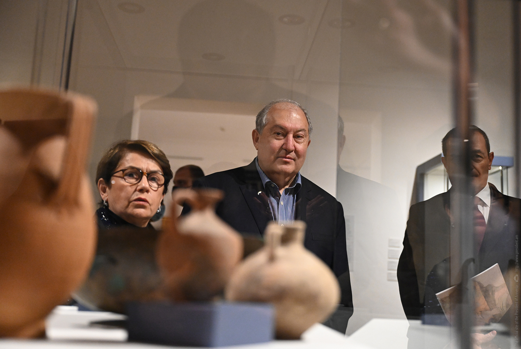 Le président Armen Sarkissian et Mme Nouneh Sarkissian, accompagnés de l'ambassadeur d'Italie en Arménie Alfonso Di Riso, ont visité les salles d'exposition et se sont familiarisés avec les pièces archéologiques de l'ancienne ville romaine.