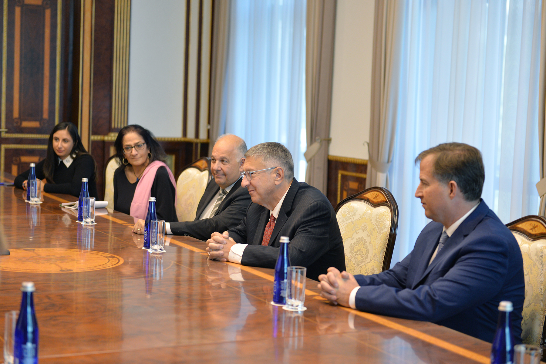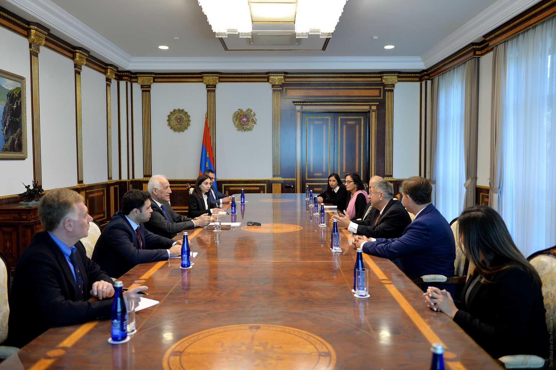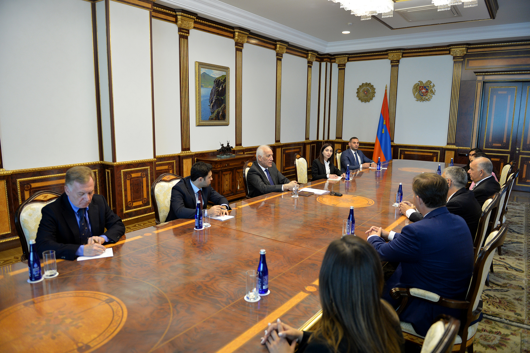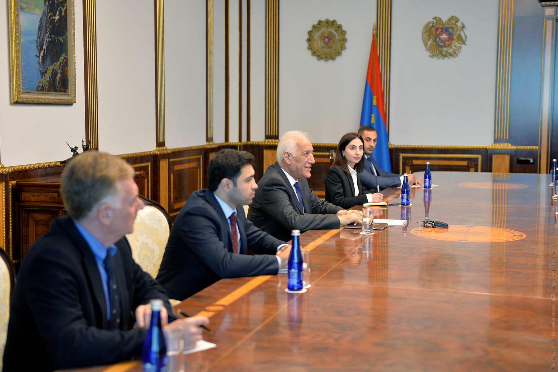 Le Président de la République Vahagn Khatchatourian a reçu les co-présidents du conseil d'administration de l'Assemblée arménienne des États Unis (Armenian Assembly of America) Van Krikorian et Anthony Barsamian, ainsi que le directeur exécutif de l'Assemblée Bryan Ardouny.