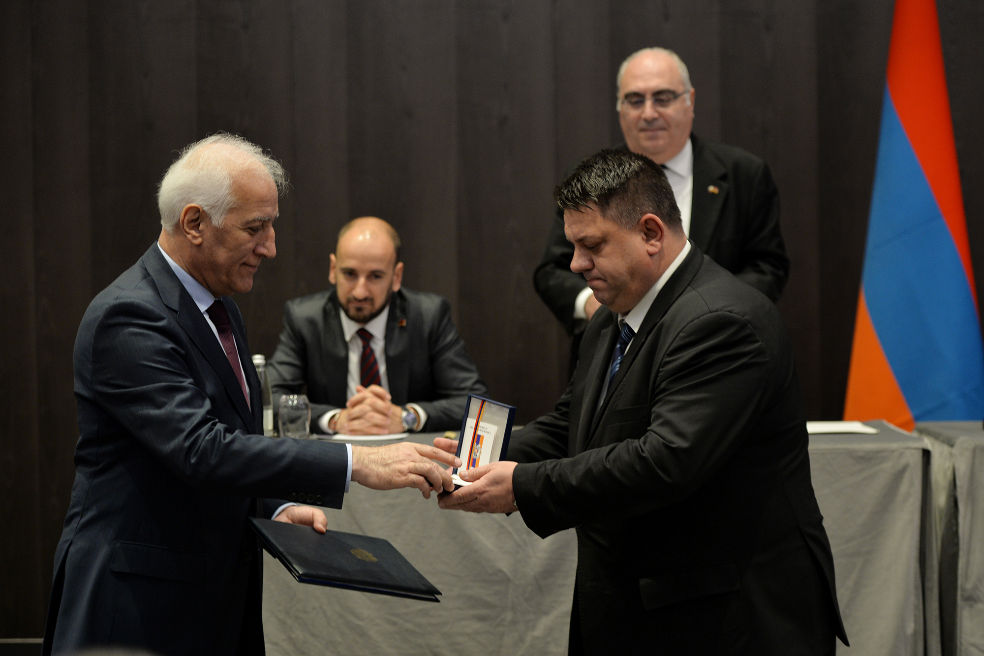 Au début de la rencontre, le Président de la République a remis à Atanas Zafirov, membre du Parlement bulgare, président du groupe d'amitié Arménie-Bulgarie, une médaille de reconnaissance pour sa contribution au renforcement et au développement des relations amicales entre l'Arménie et la Bulgarie et à la protection des valeurs universelles.