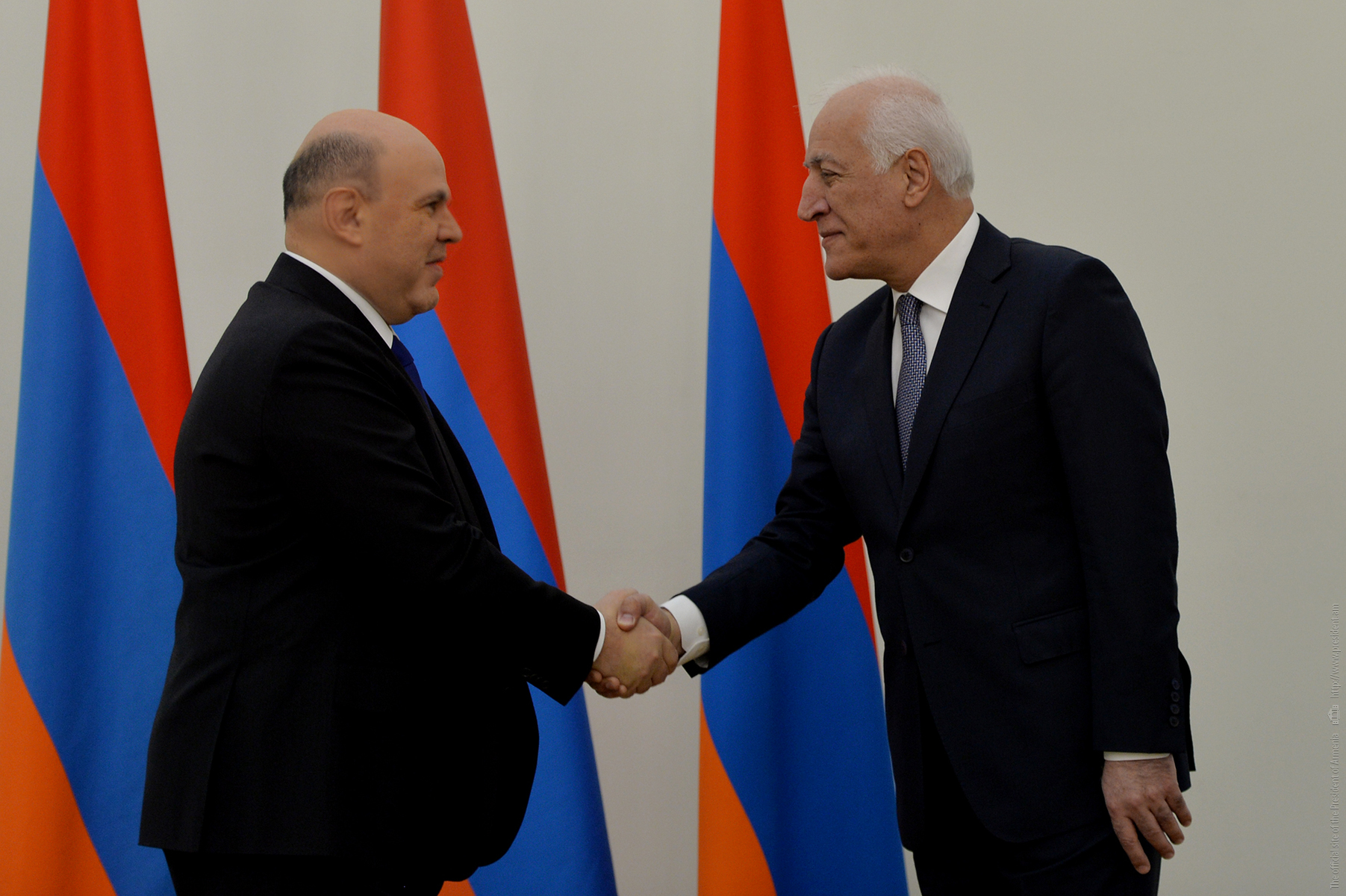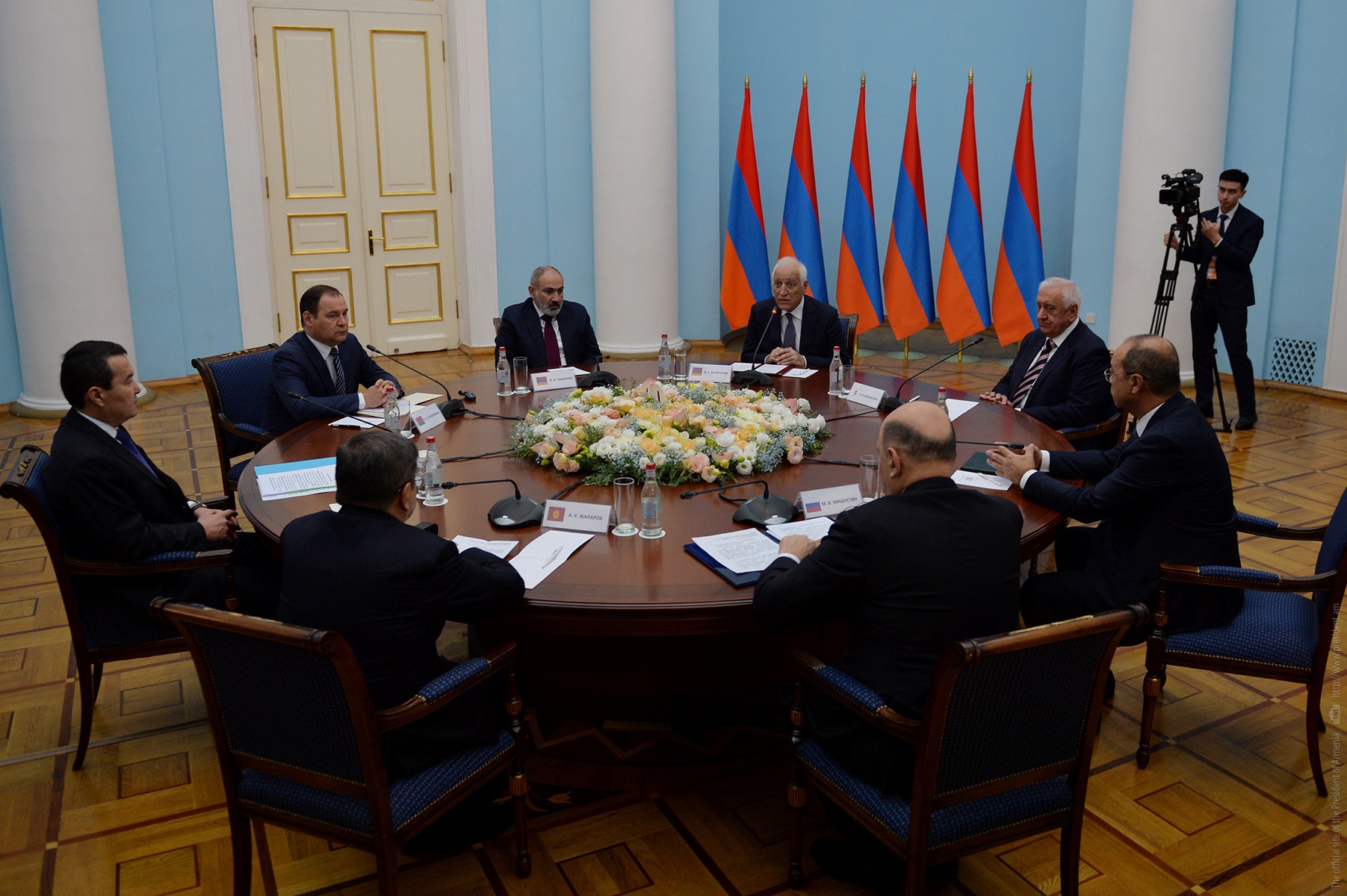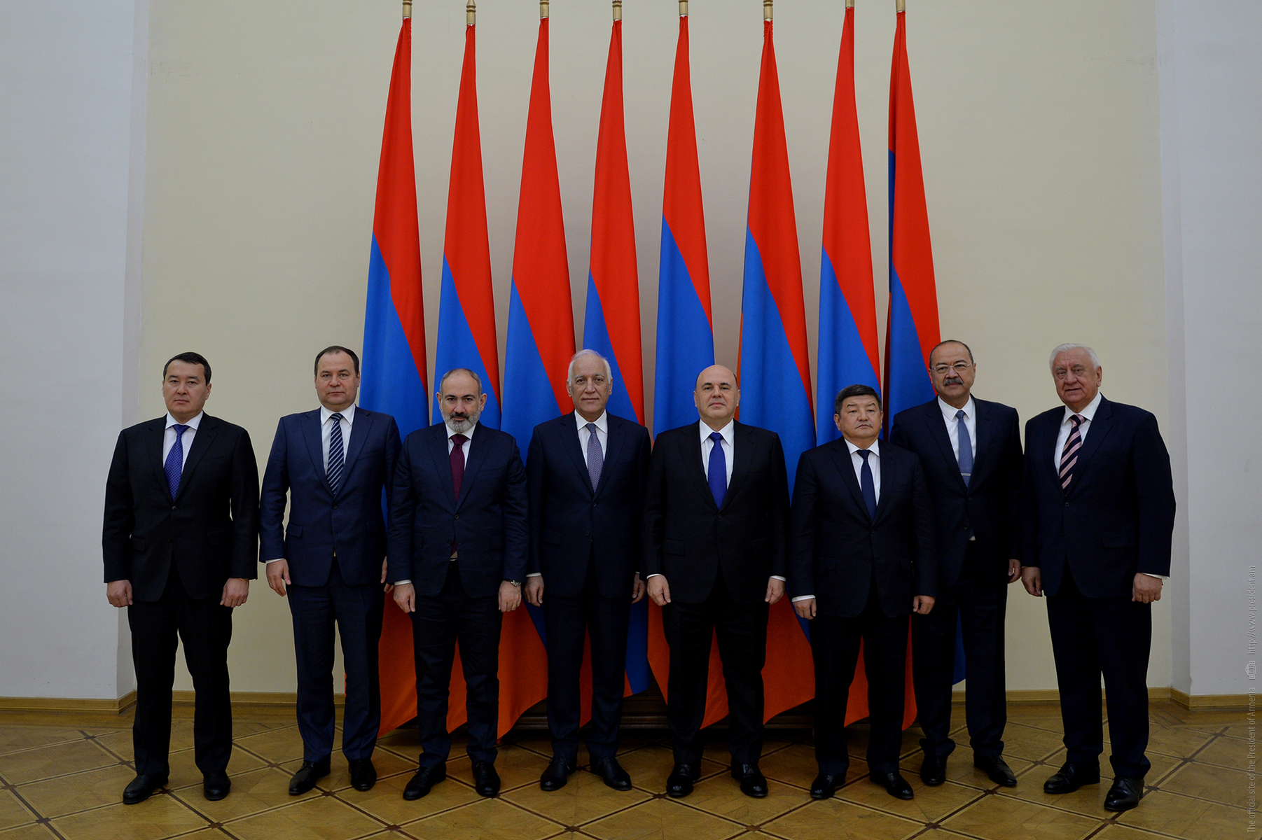 Le Président Vahagn Khatchatourian a reçu à la Résidence du Président les Premiers ministres des pays membres de l'UEEA et le Président de la Commission économique eurasienne Mikhail Myasnikovitch, arrivés en Arménie pour participer à la réunion du Conseil intergouvernemental eurasien.