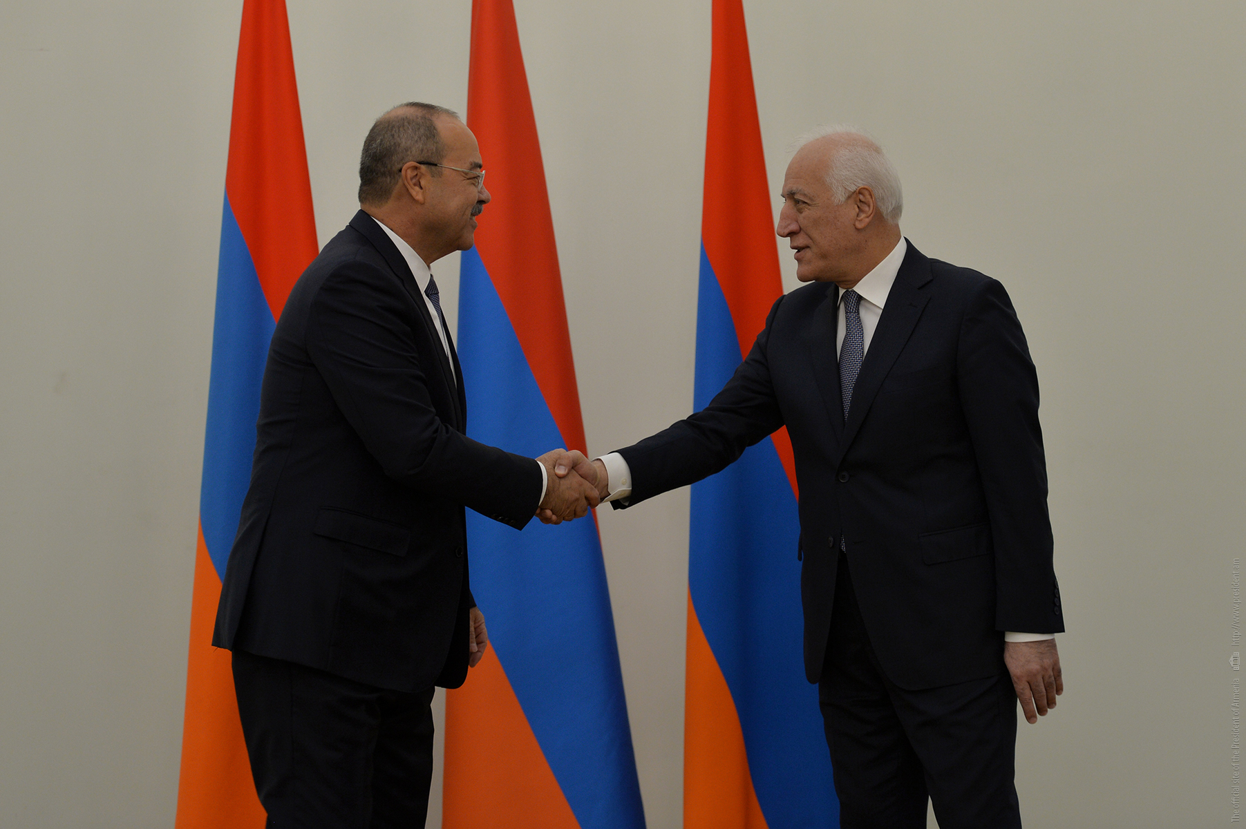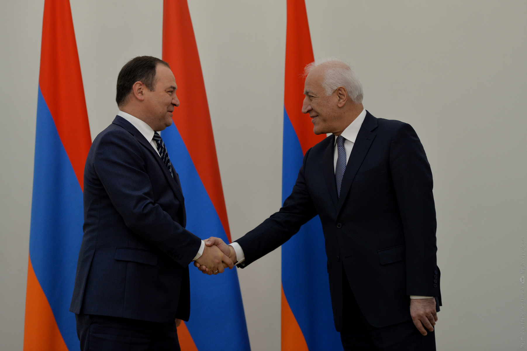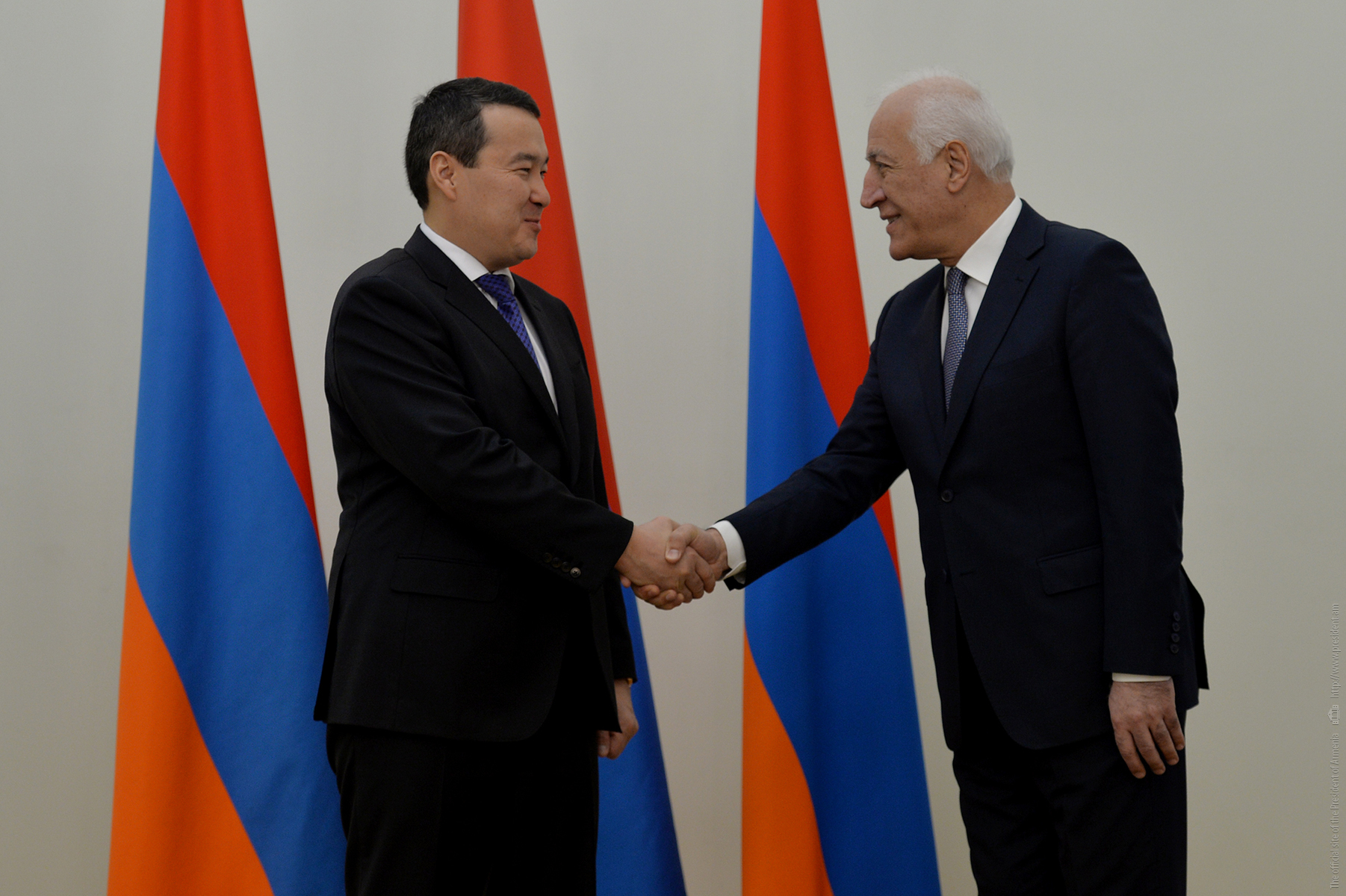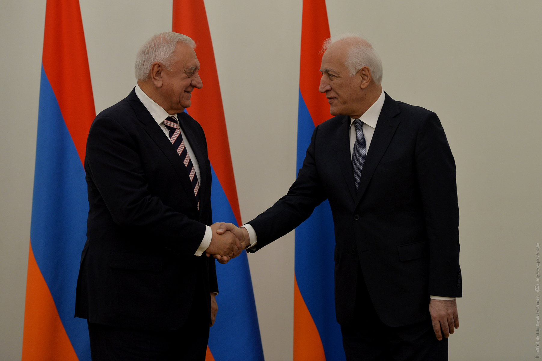 Le Président Vahagn Khatchatourian a reçu à la Résidence du Président les Premiers ministres des pays membres de l'UEEA et le Président de la Commission économique eurasienne Mikhail Myasnikovitch, arrivés en Arménie pour participer à la réunion du Conseil intergouvernemental eurasien.