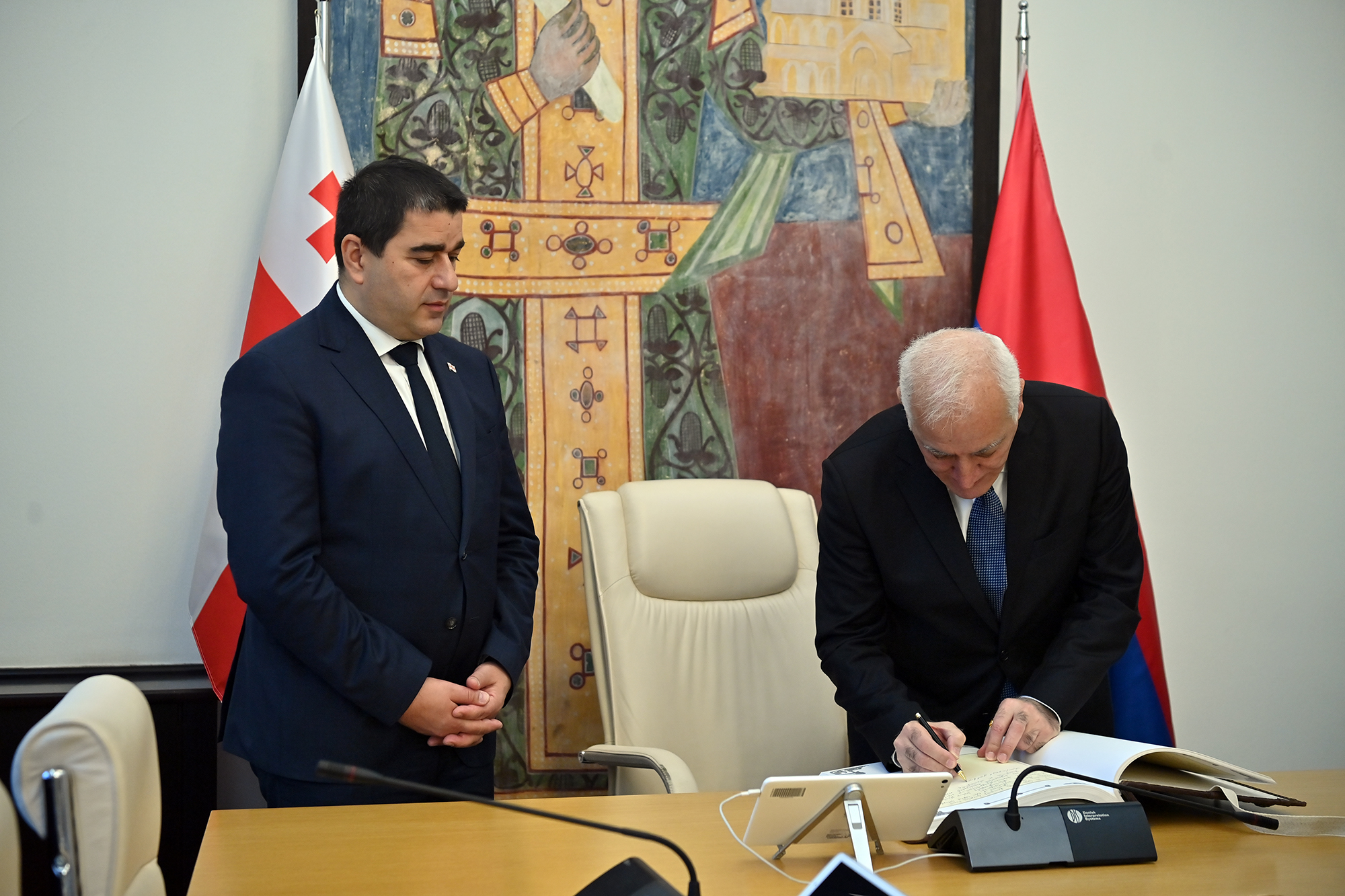 Le président Vahagn Khatchatourian a rencontré le président du Parlement géorgien Shalva Papuashvili