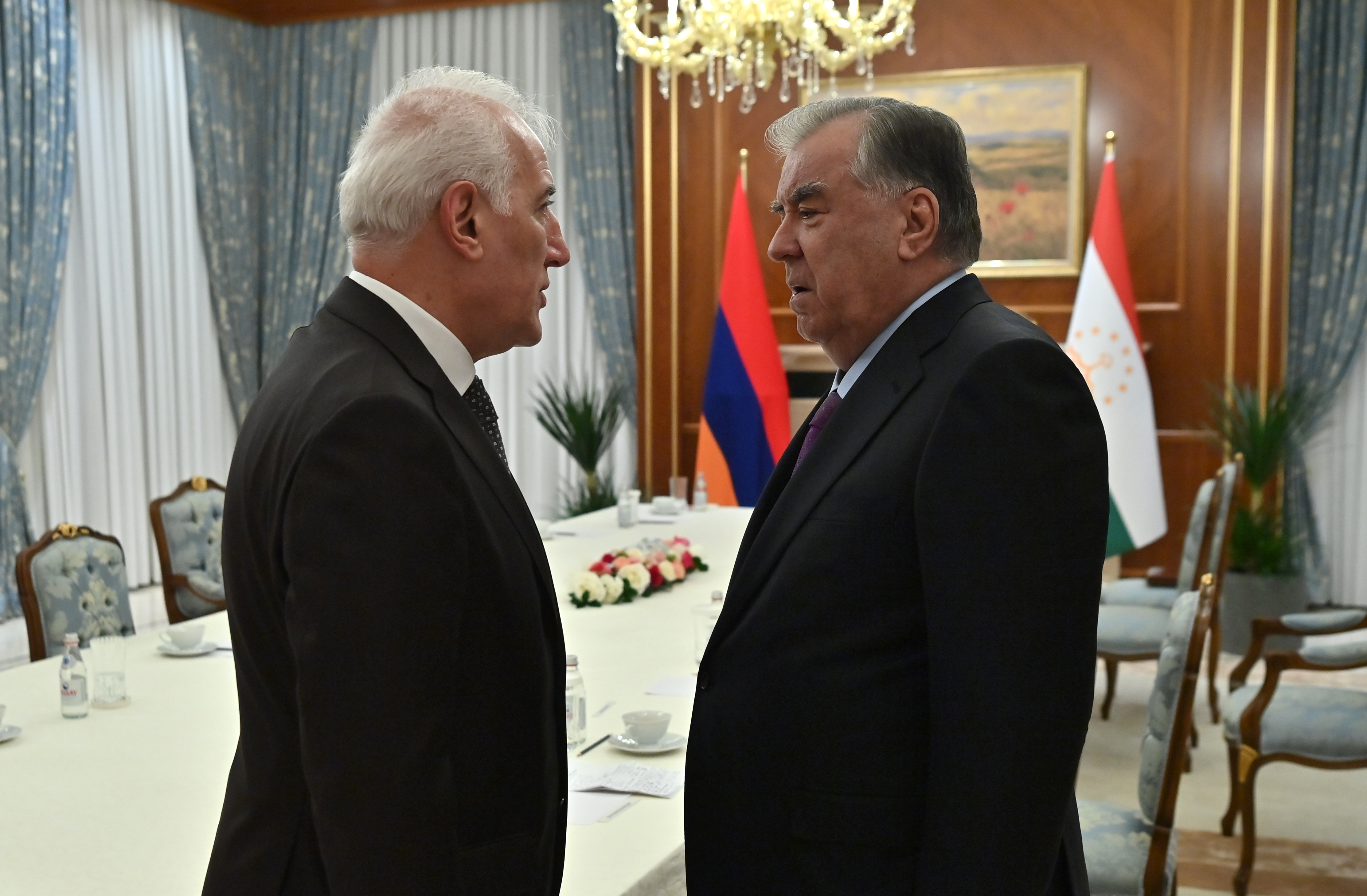 Le président de la République, Vahagn Khatchatourian, a rencontré le président du Tadjikistan, Emomali Rahmon, dans le cadre de sa visite de travail au Kazakhstan.
