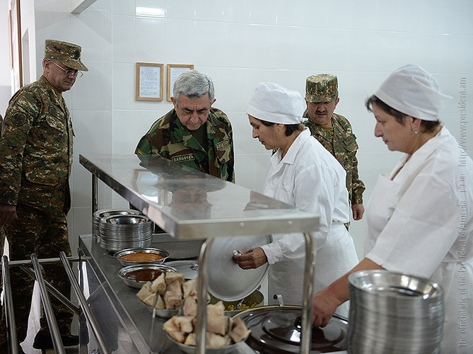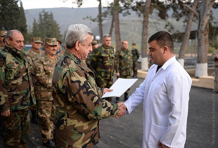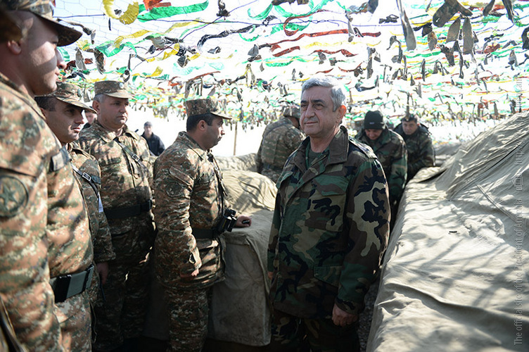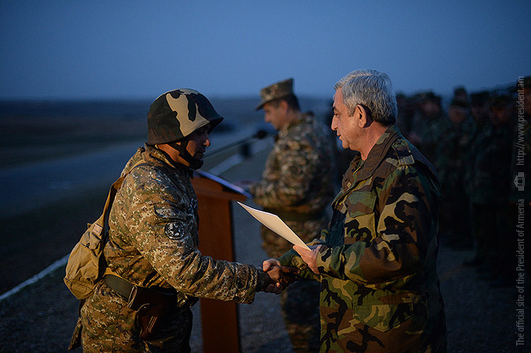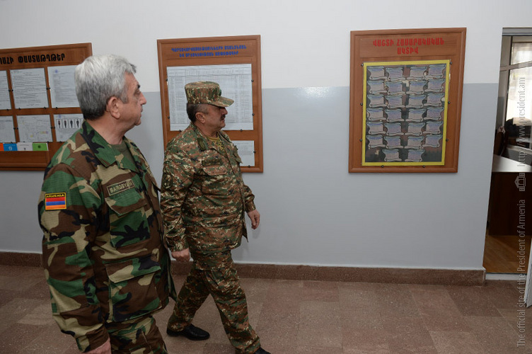 Սերժ Սարգսյանը եղել է նաև բանակային բնագծում, դիտել ստորաբաժանումների գործողությունները, ներկա գտնվել նոր զորանոցի ու զինավանի բացման արարողություններին, ապա խրախուսել ծառայության մեջ աչքի ընկած զինծառայողներին: