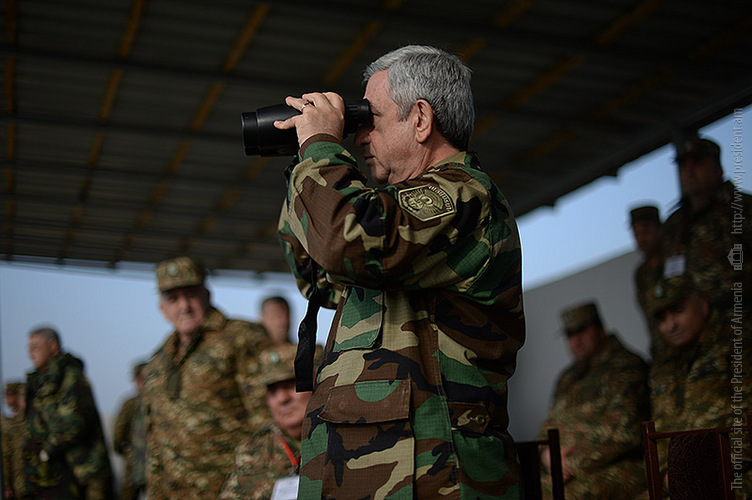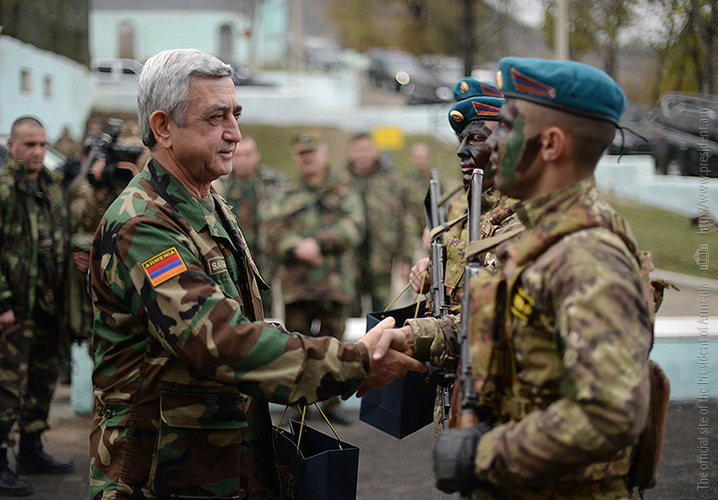 ՀՀ և ԼՂՀ զինված ուժերի «Միասնություն-2014» համատեղ օպերատիվ-մարտավարական զորավարժությունների շրջանակներում աշխատանքային այցով ԼՂՀ-ում գտնվող ՀՀ Նախագահ Սերժ Սարգսյանը հոկտեմբերի 13-ին ԼՂՀ Նախագահ Բակո Սահակյանի, հայկական երկու հանրապետությունների պաշտպանության նախարարների և զինված ուժերի բարձրաստիճան հրամկազմի ներկայացուցիչների հետ դիտել է Արցախի Հանրապետության կենտրոնական հատվածում պաշտպանության բանակի ստորաբաժանումների անցկացրած զորավարժությունները, խրախուսել ծառայության մեջ առավել աչքի ընկած զինծառայողներին: