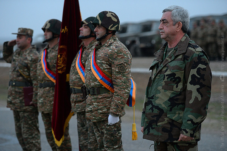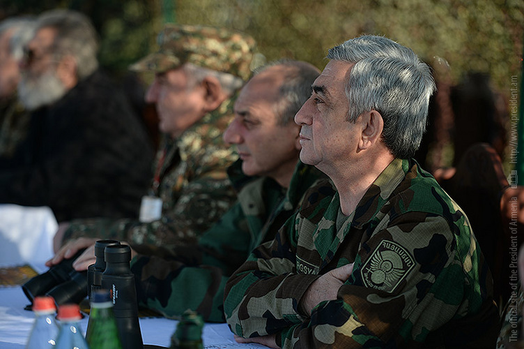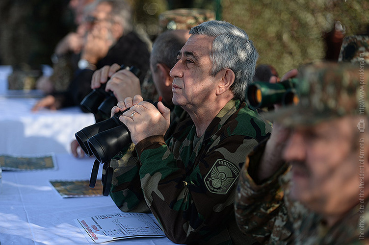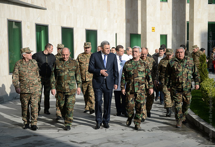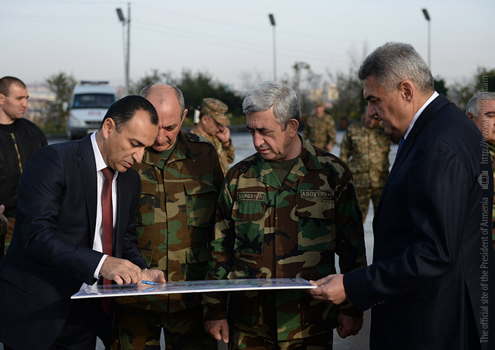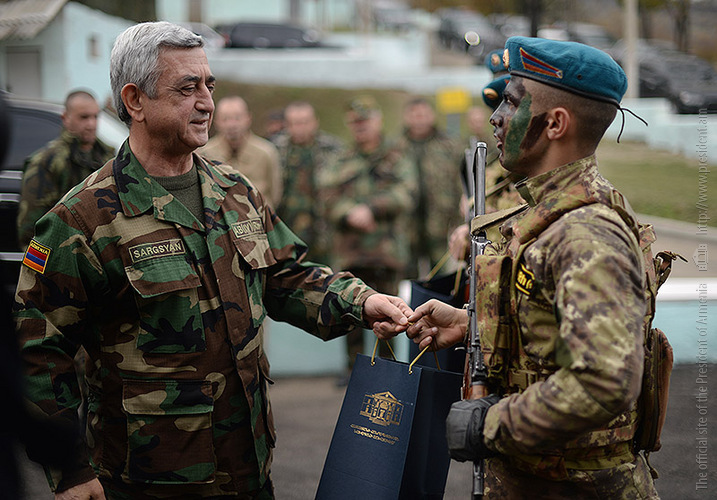 ՀՀ Նախագահ, ՀՀ զինված ուժերի գերագույն գլխավոր հրամանատար Սերժ Սարգսյանը, հայկական երկու հանրապետությունների «Միասնություն-2014» համատեղ օպերատիվ-մարտավարական զորավարժությունների շրջանակներում, Արցախի Հանրապետության Նախագահ Բակո Սահակյանի հետ նոյեմբերի 15-ի առավոտյան այցելել է առանձին մոտոհրաձգային բրիգադի մշտական տեղակայման վայր, արգելագոտում դիտել ցուցադրական պարապմունքները: