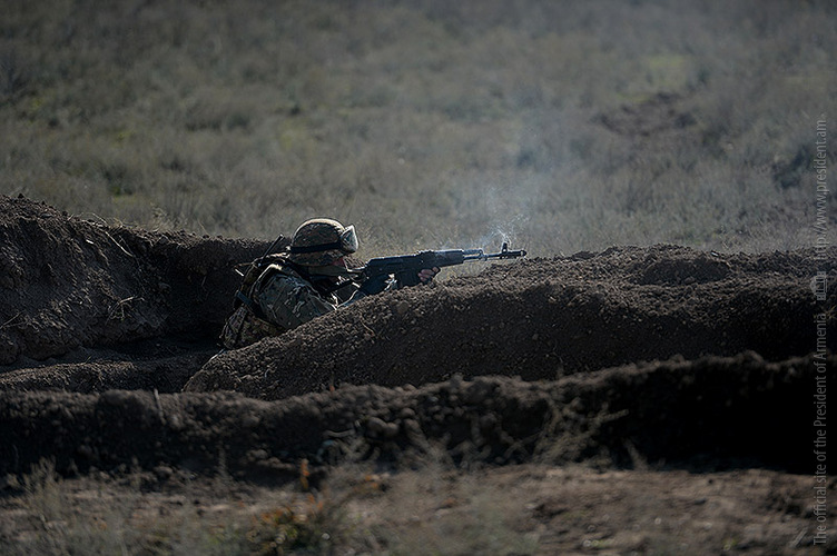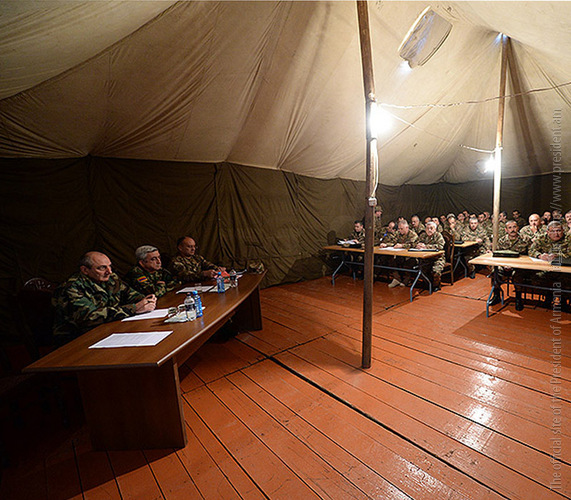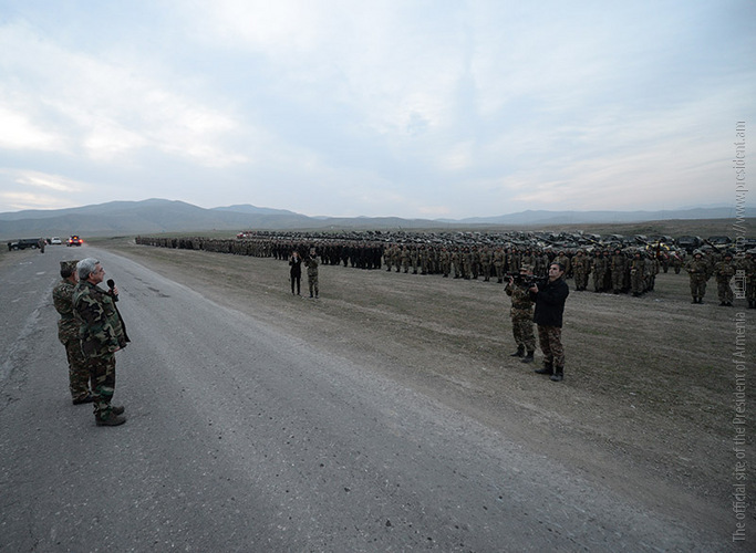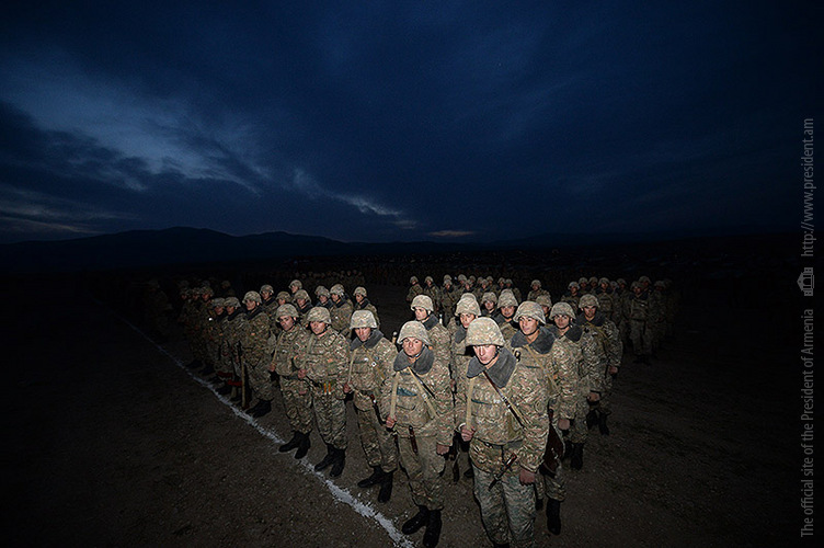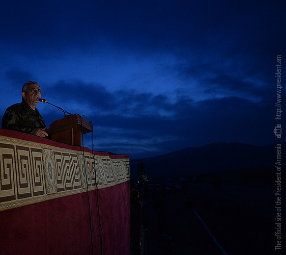 Պայմանական մարտի դաշտում և շփման գծում ձեր կողմից ցուցաբերած վարքը, ձեր մարտական պատրաստականությունը արժանի է ոչ թե թերագնահատման, այլ գնահատանքի: Ձեր վարպետությունն արդեն ստիպում է Ադրբեջանում ապրող շատ-շատ միամիտների՝ փոխել իրենց կարծիքը պատերազմի մասին: Նրանք մտածում էին, որ Ղարաբաղի, Հայաստանի դեմ կռվելը կարճ և հաճելի զբաղմունք է, ֆլեշմոբի պես մի բան՝ հավաքվեցինք, մի բան սարքեցինք, նկարվեցինք ու ցրվեցինք: Ո՛չ, ֆլեշմոբ չի՛ լինելու: Հաճույք և զբոսանք չի լինելու: Եվ վստահ եմ՝ պատերազմ էլ չի լինելու, քանի որ դուք կաք, քանի որ դուք ուժեղ եք, քանի որ դուք կանգնած եք այստեղ: