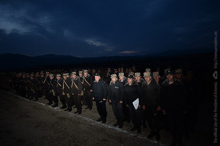 Մենք շնորհակալ ենք ձեզ: Դուք մեր զավակներն եք, մենք ձեր թիկունքին ենք, դուք մեր պաշտպաններն եք: Հիշե՛ք: Բոլորիդ հաջողություն եմ մաղթում, զորավարժություններով ոչինչ չի ավարտվում, զորավարժություններով նորից է սկսվում մարտական պատրաստությունը, չարչարանքը, նորից են սկսվում զրկանքները, որովհետև և՛ պատերազմը, և՛ զորավարժությունները արտակարգ իրավիճակներ են: Իսկ արտակարգ իրավիճակը պահանջում է արտակարգ գործողություններ, որոնք լի են դժվարություններով, զրկանքներով: Բայց հիշե՛ք՝ աշխարհի վրա չկա ավելի սրբազան բան, քան ծառայել Հայրենիքի անվտանգությանը: Դուք դա շատ-շատ լավ եք անում: