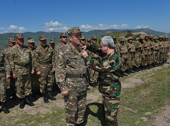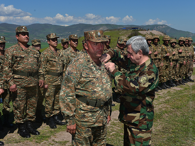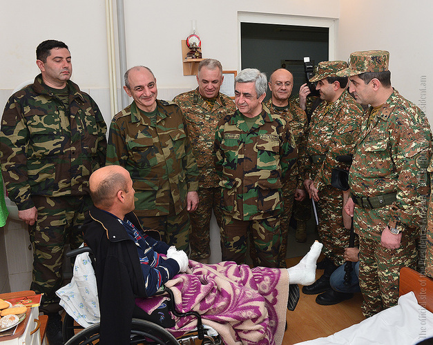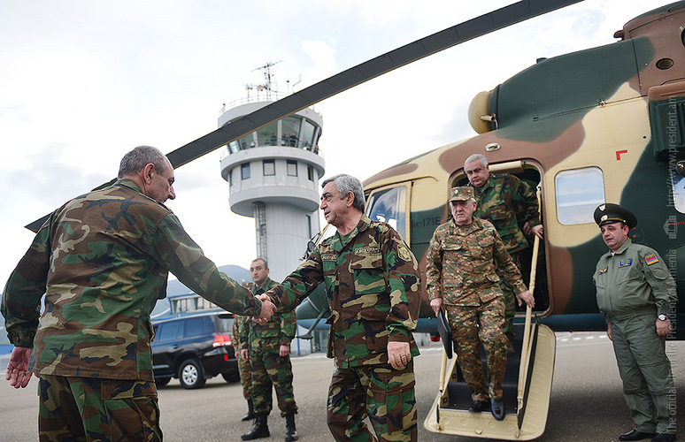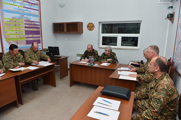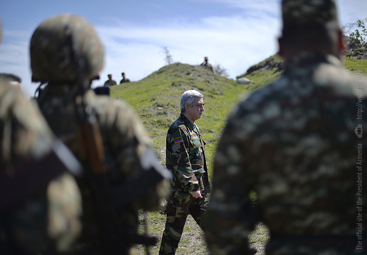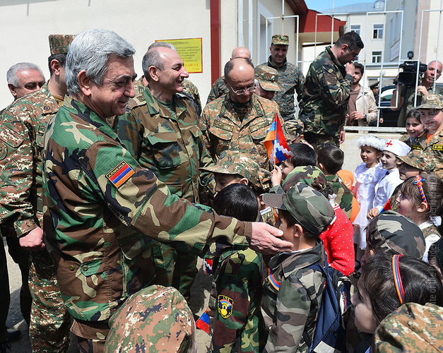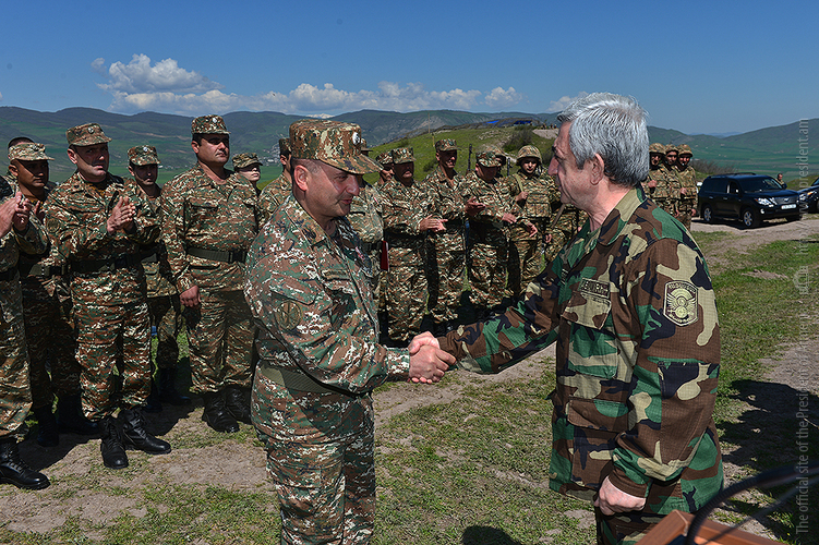 ՀՀ Նախագահ Սերժ Սարգսյանը և ԼՂՀ Նախագահ Բակո Սահակյանը ապրիլի 19-ին և 20-ին այցելել են ԼՂՀ հյուսիսարևելյան և հարավային հատվածներում տեղակայված մի շարք զորամասեր, խորհրդակցություն անցկացրել հրամանատարական կազմի հետ: Քննարկվել են Ադրբեջանի ագրեսիայի հետևանքով հանրապետությունում ստեղծված իրավիճակին և զինվորների ծառայության ընթացքին վերաբերող մի շարք հարցեր: Նախագահներին ուղեկցել են հայկական երկու հանրապետությունների պաշտպանության նախարարները, բարձրագույն հրամկազմի ներկայացուցիչներ: