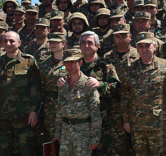Փա՛ռք ձեզ, Հայրենիքի զինվորներ, փա՛ռք մեր ընկածներին, փա՛ռք մեր զորքին: Ես մի վայրկյան անգամ չեմ կասկածում, որ մենք բոլորս միասին, յուրաքանչյուրս մեր տեղում կատարելու ենք Հայրենիքի զինվորի պարտականությունները, իսկ այդ պարտականությունները սուրբ են: Անփորձանք ծառայություն, թեև պատերազմի ժամանակ այս բառերը մի տեսակ լուրջ չեն հնչում: Փա՛ռք ձեր ծնողներին, փա՛ռք այն ընտանիքներին, որտեղ դուք ծնվել ու դաստիարակվել եք, փա՛ռք ձեր ուսուցիչներին: Շնորհակալ եմ»,-ասել է Նախագահ Սերժ Սարգսյանը: