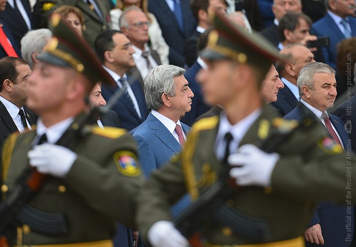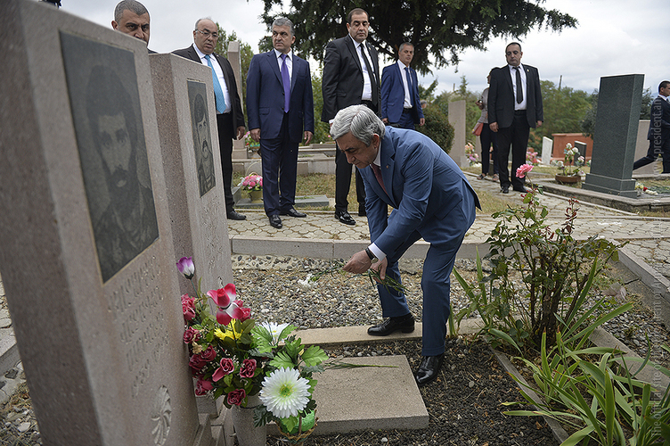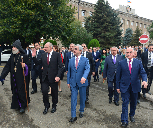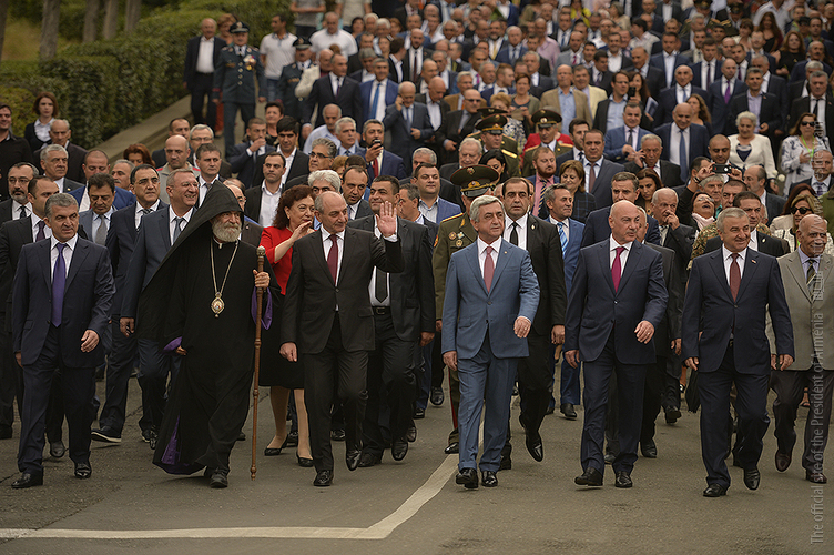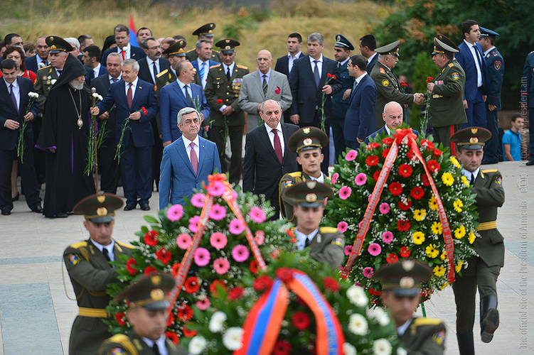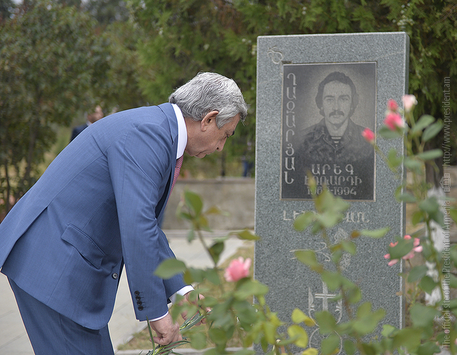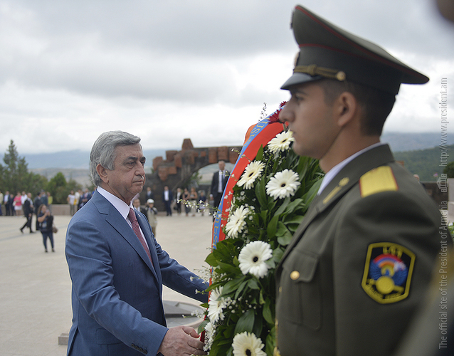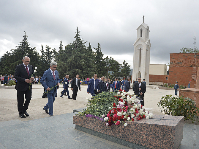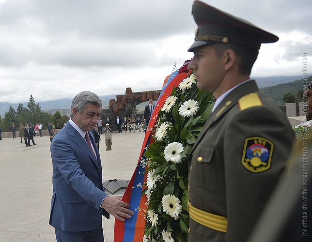 Սերժ Սարգսյանը ԼՂՀ Նախագահ Բակո Սահակյանի, Արցախի Հանրապետության հռչակման 25-րդ տարեդարձին մասնակցելու նպատակով Հայաստանից ժամանած պաշտոնական պատվիրակության, արցախահայության և արտերկրից ժամանած հյուրերի հետ Վերածննդի հրապարակից առավոտյան հանդիսավոր քայլերթով այցելել է Ստեփանակերտի հուշահամալիր, ծաղկեպսակ դրել և հարգանքի տուրք մատուցել Արցախի անկախության համար զոհված հայորդիների հիշատակին: Սերժ Սարգսյանը Արցախյան ազատամարտում զոհվածների պանթեոնում ծաղիկներ է դրել ազատամարտի նահատակների և ԼՂՀ Գերագույն խորհրդի առաջին նախագահ Արթուր Մկրտչյանի շիրիմներին: