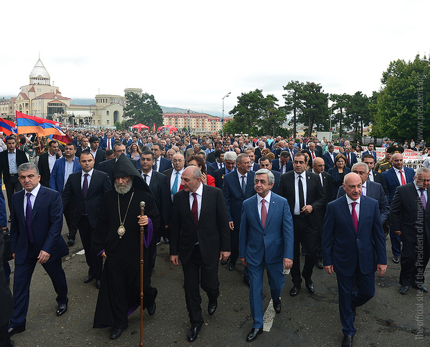 Աշխատանքային այցով Լեռնային Ղարաբաղի Հանրապետությունում գտնվող ՀՀ Նախագահ Սերժ Սարգսյանը մայրաքաղաք Ստեփանակերտում մասնակցել է ԼՂՀ հռչակման 25-րդ տարեդարձին նվիրված միջոցառումներին: