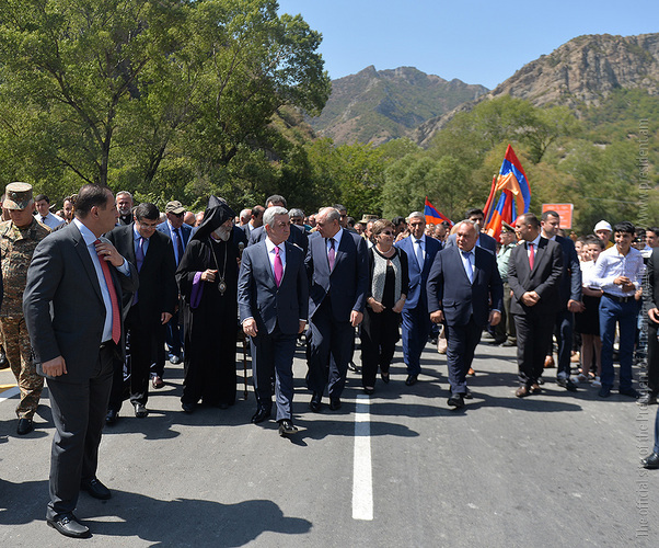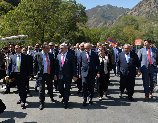 Աշխատանքային այցով Արցախի Հանրապետությունում գտնվող Նախագահ Սերժ Սարգսյանն Արցախի Նախագահ Բակո Սահակյանի հետ միասին ներկա է գտնվել Վարդենիս-Մարտակերտ ավտոճանապարհի բացման արարողությանը: Ճանապարհը կառուցվել է համայն հայության նվիրատվություններով՝ «Հայաստան» համահայկական հիմնադրամի կողմից 2013 և 2014 թվականների հեռուստամարաթոնների ընթացքում հավաքագրված միջոցների և Հայաստանի ու Արցախի կառավարությունների աջակցությամբ։