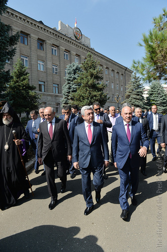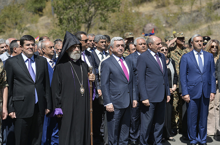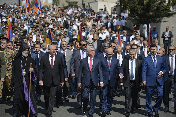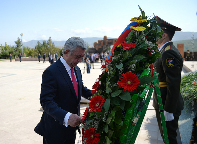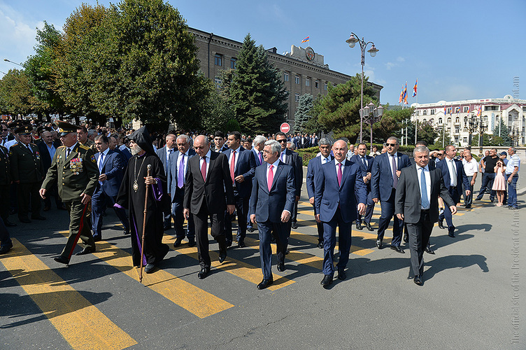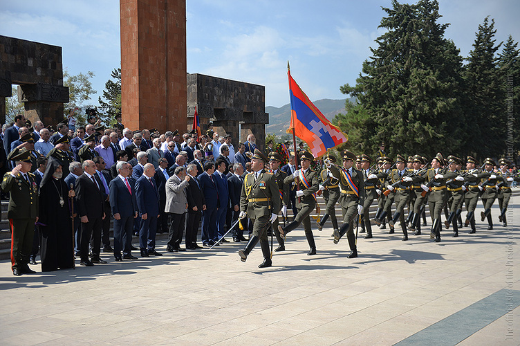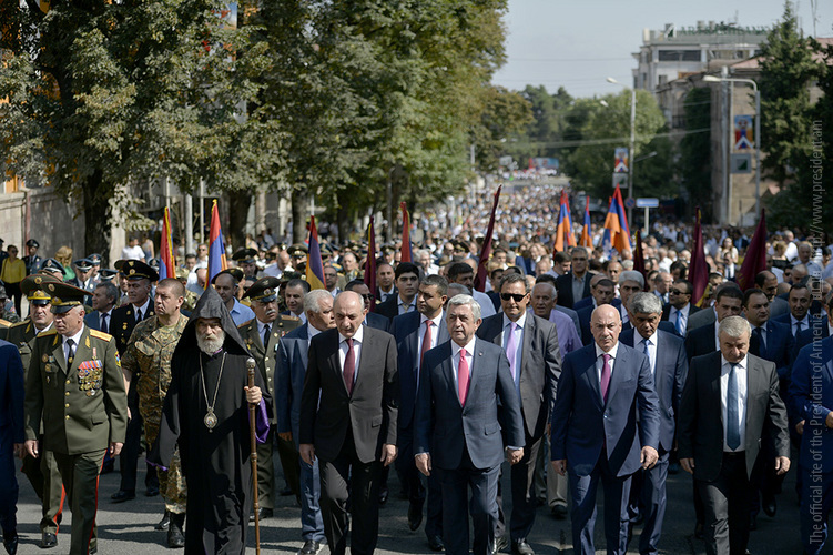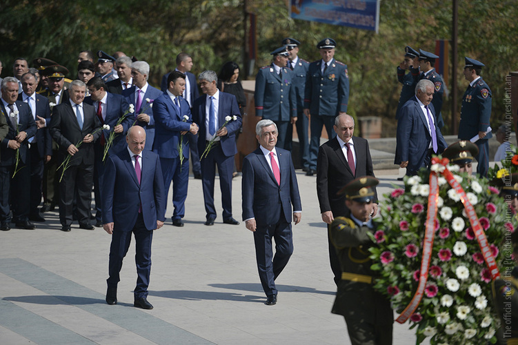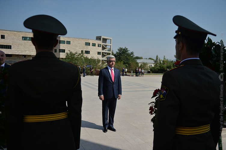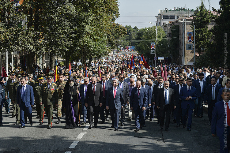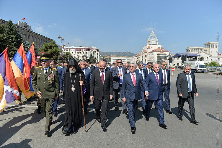 Սերժ Սարգսյանը Արցախի Նախագահ Բակո Սահակյանի, արցախահայության և տոնակատարությանը մասնակցելու նպատակով Հայաստանից ժամանած պաշտոնական պատվիրակության ու արտերկրից ժամանած հյուրերի հետ Վերածննդի հրապարակից առավոտյան հանդիսավոր քայլերթով այցելել է Ստեփանակերտի հուշահամալիր, ծաղկեպսակ դրել և հարգանքի տուրք մատուցել Արցախի անկախության համար զոհված հայորդիների հիշատակին: