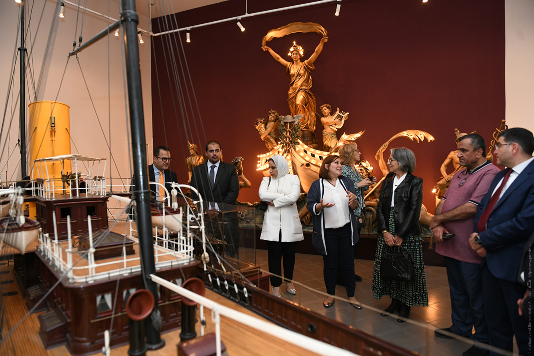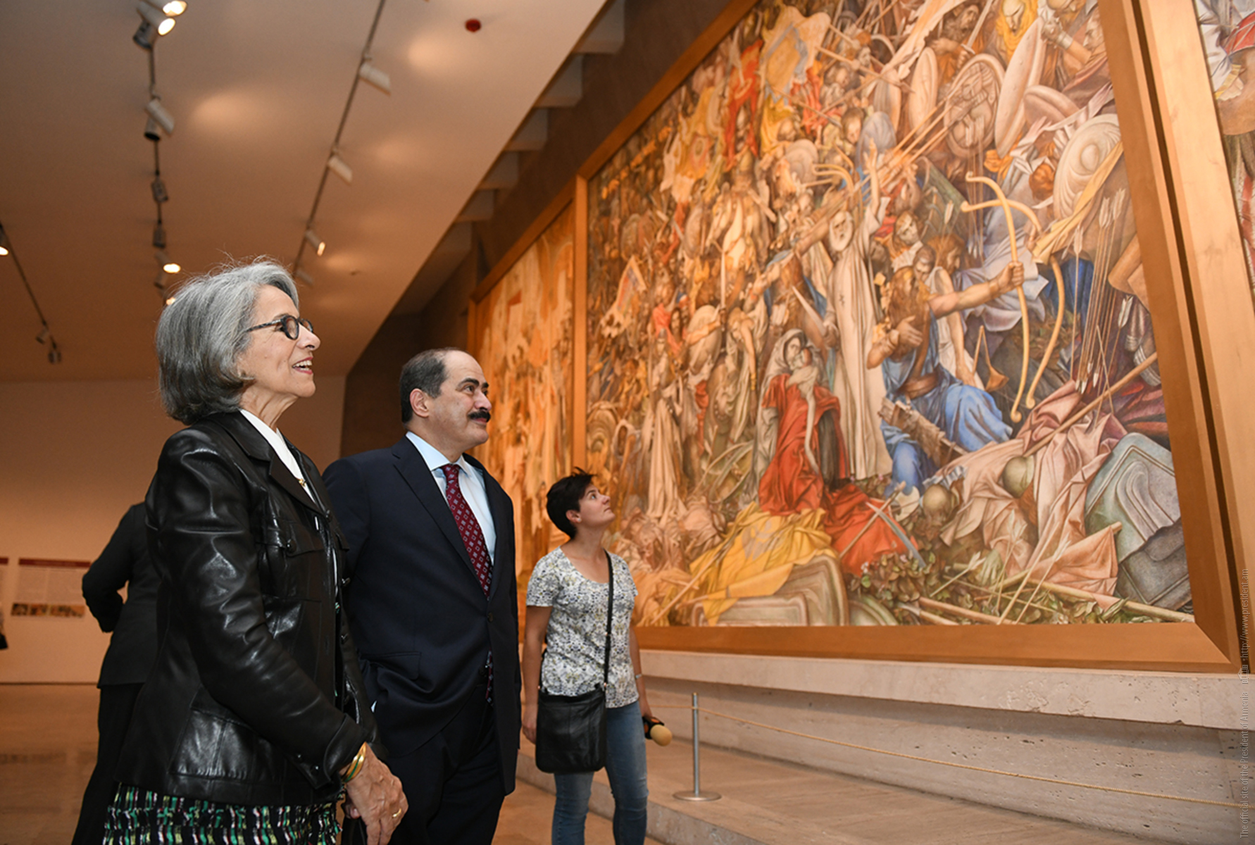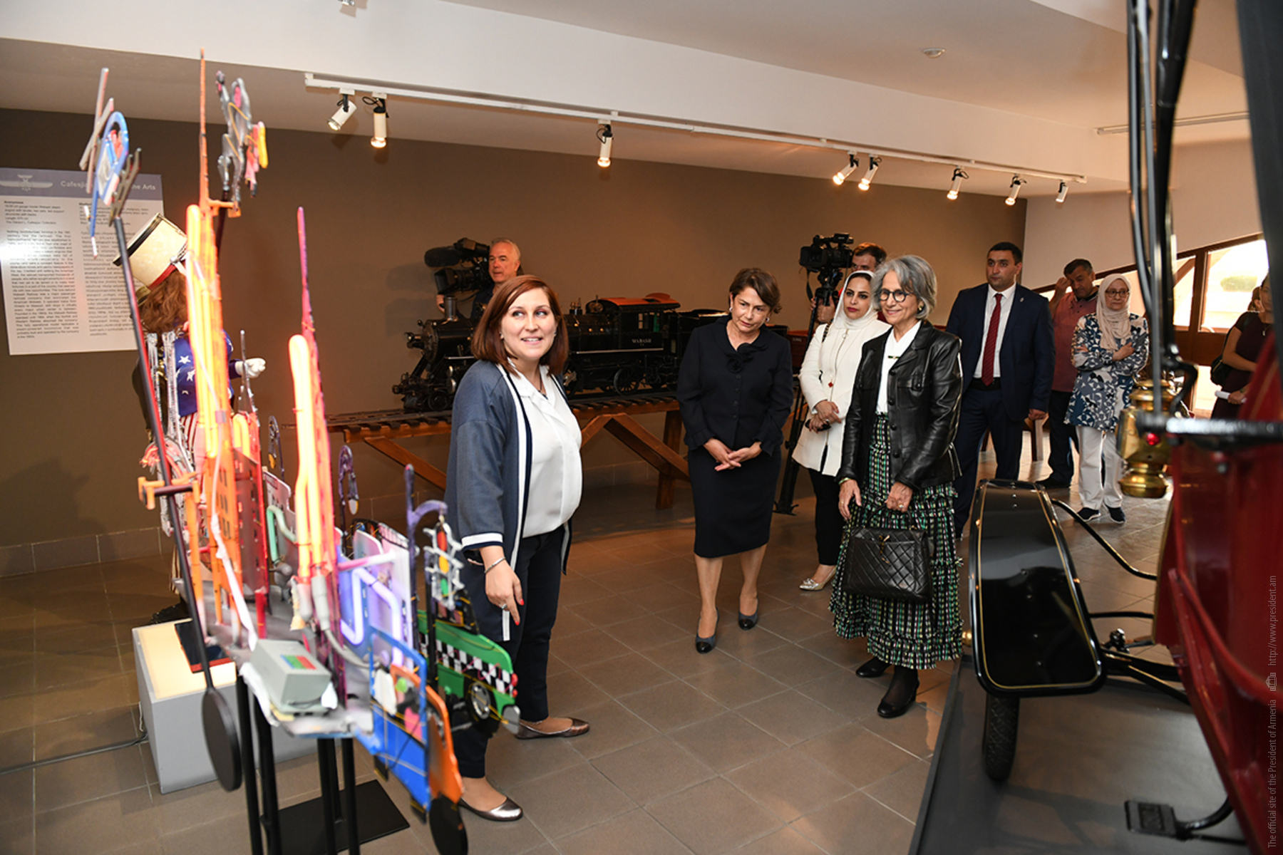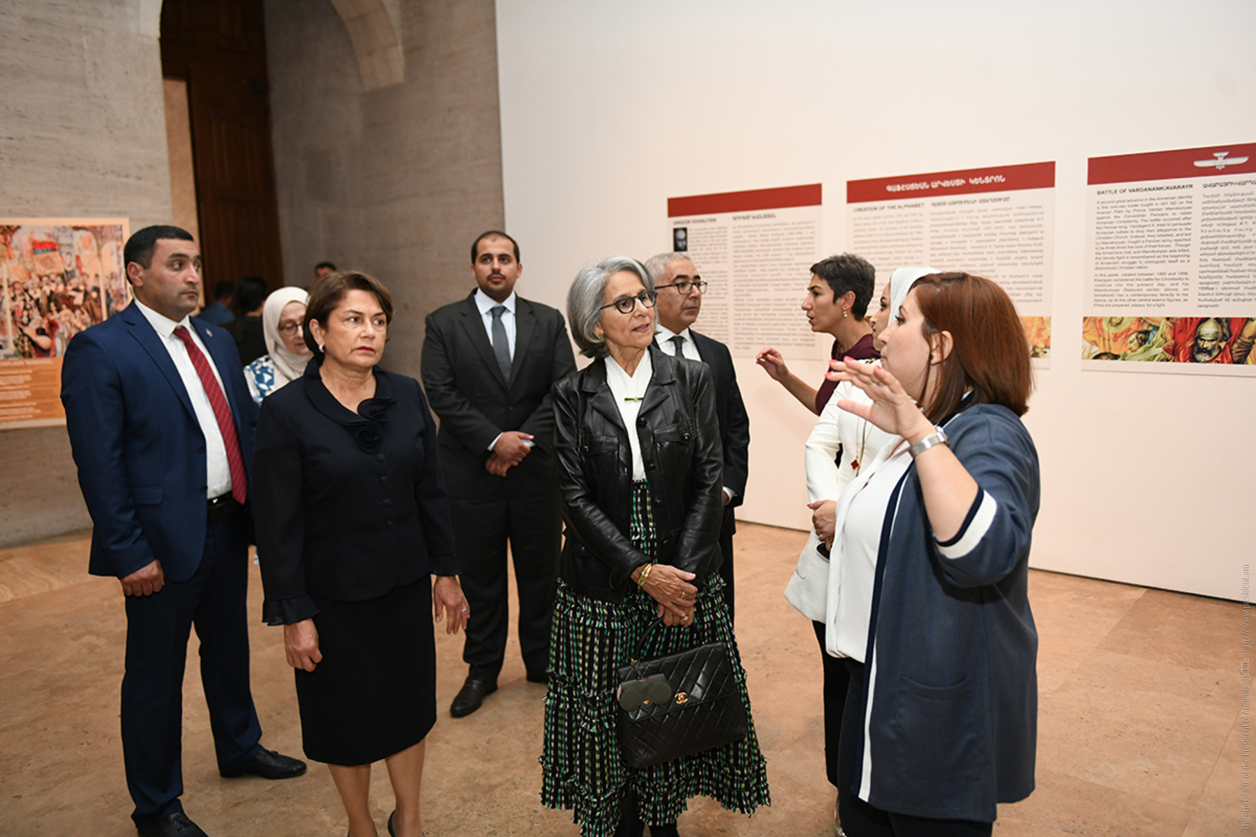 Քուվեյթի շեյխուհու գլխավորած պատվիրակության անդամները Նունե Սարգսյանի հետ շրջել են կենտրոնի ցուցասրահներով, ծանոթացել կենտրոնի պատմությանը: «Խանջյան» սրահում նրանք հատկապես մեծ ուշադրությամբ դիտել են մեծանուն նկարիչ Գրիգոր Խանջյանի մոնումենտալ որմնանկարը: