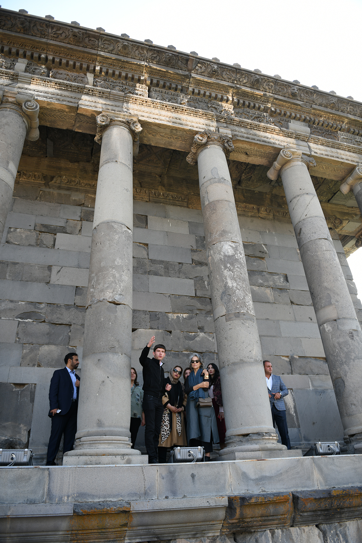 Մինչ այդ, շեյխուհի Հուսա Սաբահ Ալ-Սալեմ Ալ-Սաբահի գլխավորած պատվիրակությունը, մեր երկրի պամամշակութային ժառանգությանը ծանոթանալու նպատակով, այցելել է Գառնու հեթանոսական տաճար և Գեղարդի վանական համալիր: Հյուրերը շրջել են պատմական կոթողների տարածքում, ծանոթացել դրանց բազմադարյա պատմությանը:
