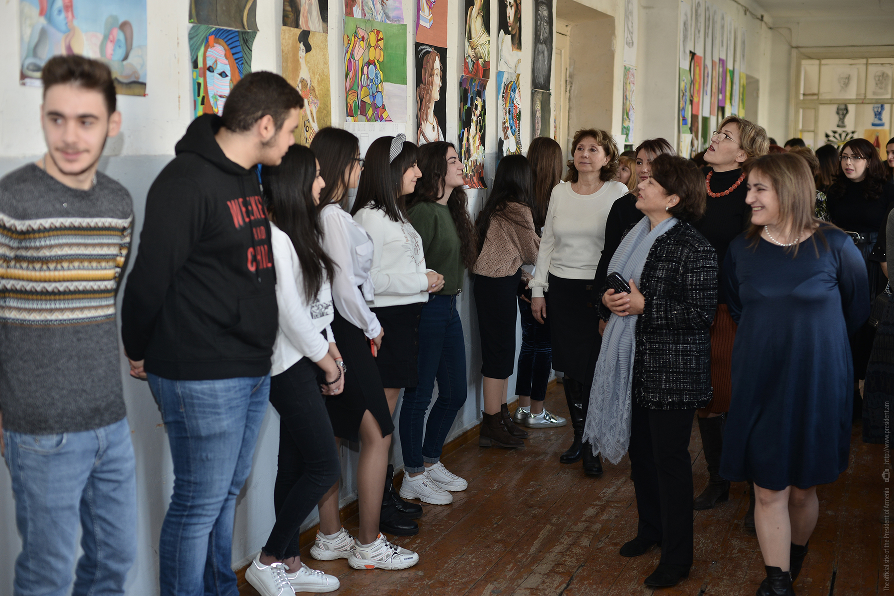 Գոհար Սանոյանը, ներկայացնելով դպրոցի սաների աշխատանքները, տեղեկացրել է, որ կերպարվեստ, դիզայն, քանդակ, համակարգչային դիզայն առարկաների պարապմունքները իրականացվում են արվեստանոցային պայմաններում և պարբերաբար կազմակերպում են ցուցահանդեսներ ու թատրոնի օրեր: