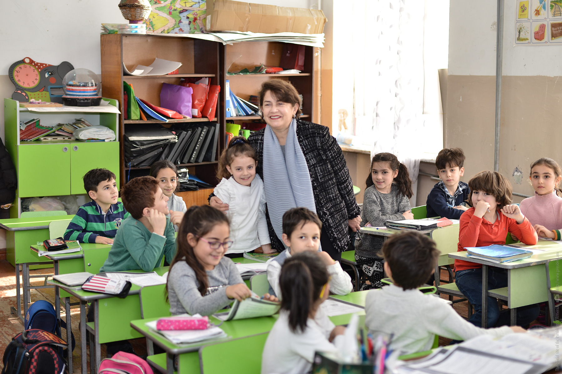 Տնօրեն Գոհար Սանոյանի ուղեկցությամբ տիկին Սարգսյանը շրջայց է կատարել կրթահամալիրում, շփվել ուսուցիչների ու աշակերտների հետ, ծանոթացել պայմաններին և երեխաների ինտելեկտուալ զարգացումն ապահովելու նպատակով իրականացվող միջոցառումներին: