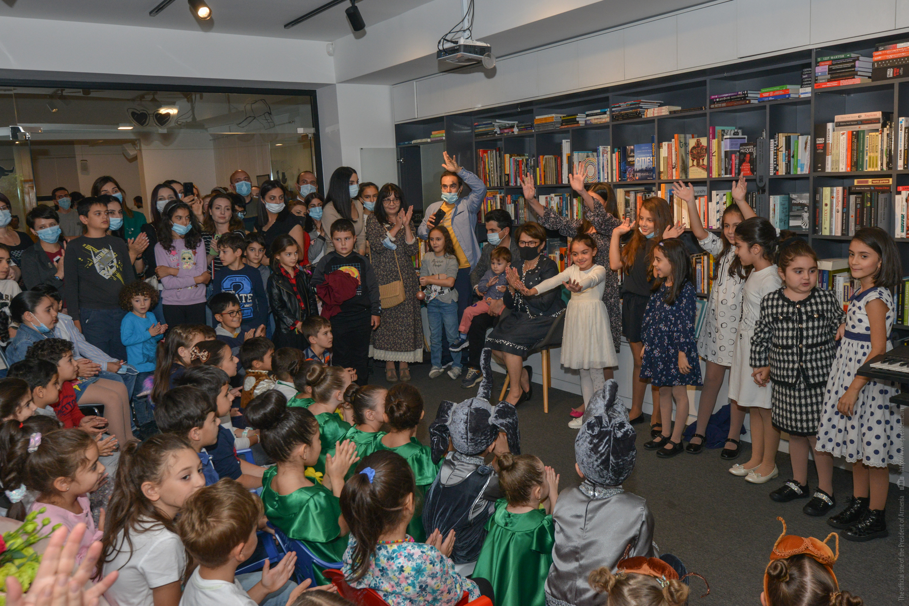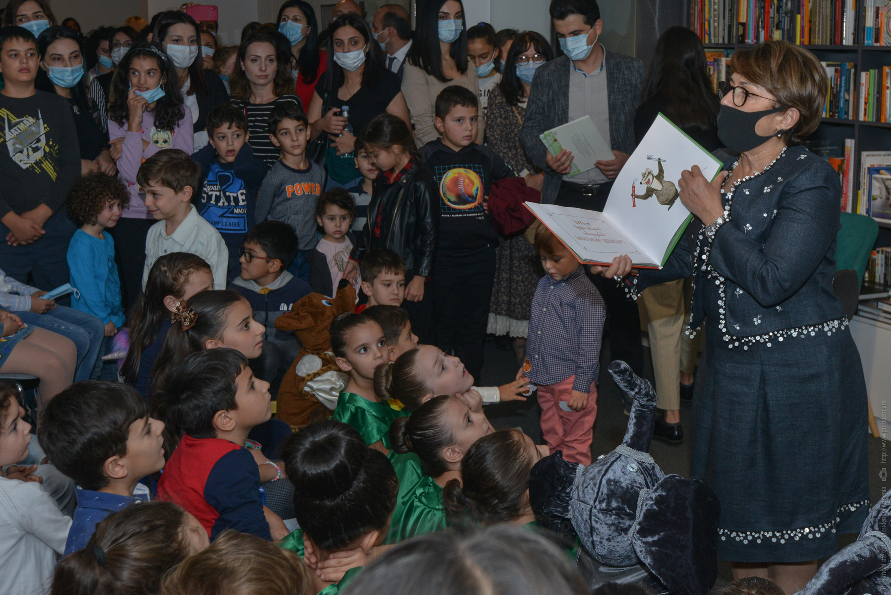 Ջերմ մթնոլորտում տեղի ունեցած միջոցառման ավարտին փոքրիկ ընթերցողները ստացել են Հանրապետության նախագահի տիկնոջ կողմից մակագրված «Զմրուխտյա մկրատը» գիրքը։