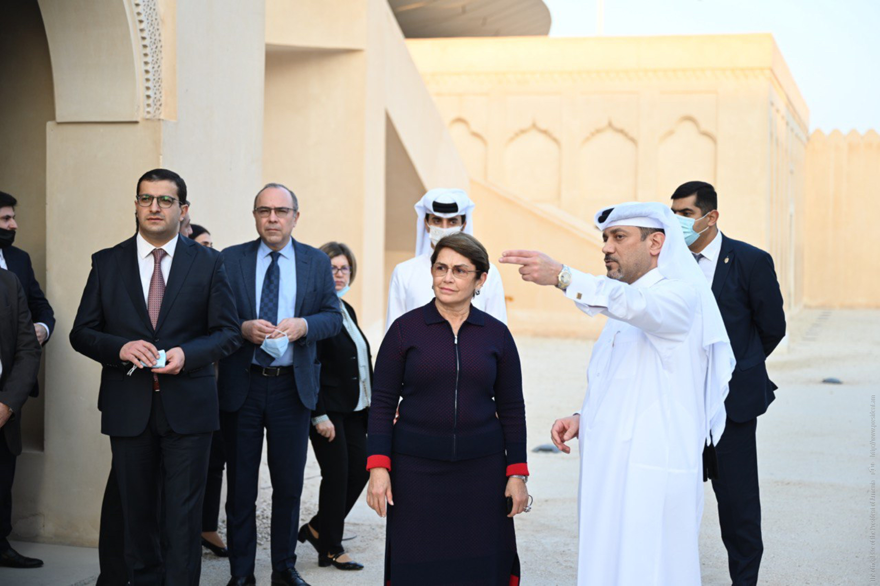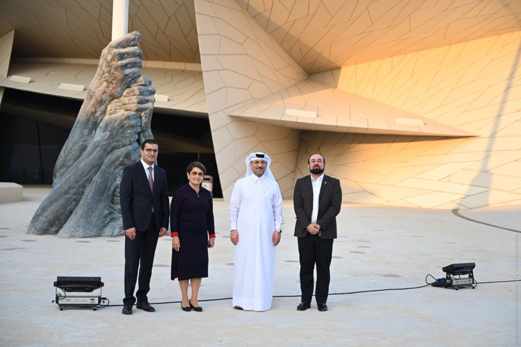 Հայաստանի Հանրապետության նախագահ Արմեն Սարգսյանի՝ Կատարի Պետություն աշխատանքային այցի շրջանակում նախագահի տիկինը՝ Նունե Սարգսյանն այցելել է Կատարի ազգային թանգարան (National Museum of Qatar): Նախագահի տիկնոջն ուղեկցել են Հայաստանի պատմության թանգարանի տնօրեն Դավիթ Պողոսյանը և Մատենադարանի գիտական քարտուղար Վահե Թորոսյանը։