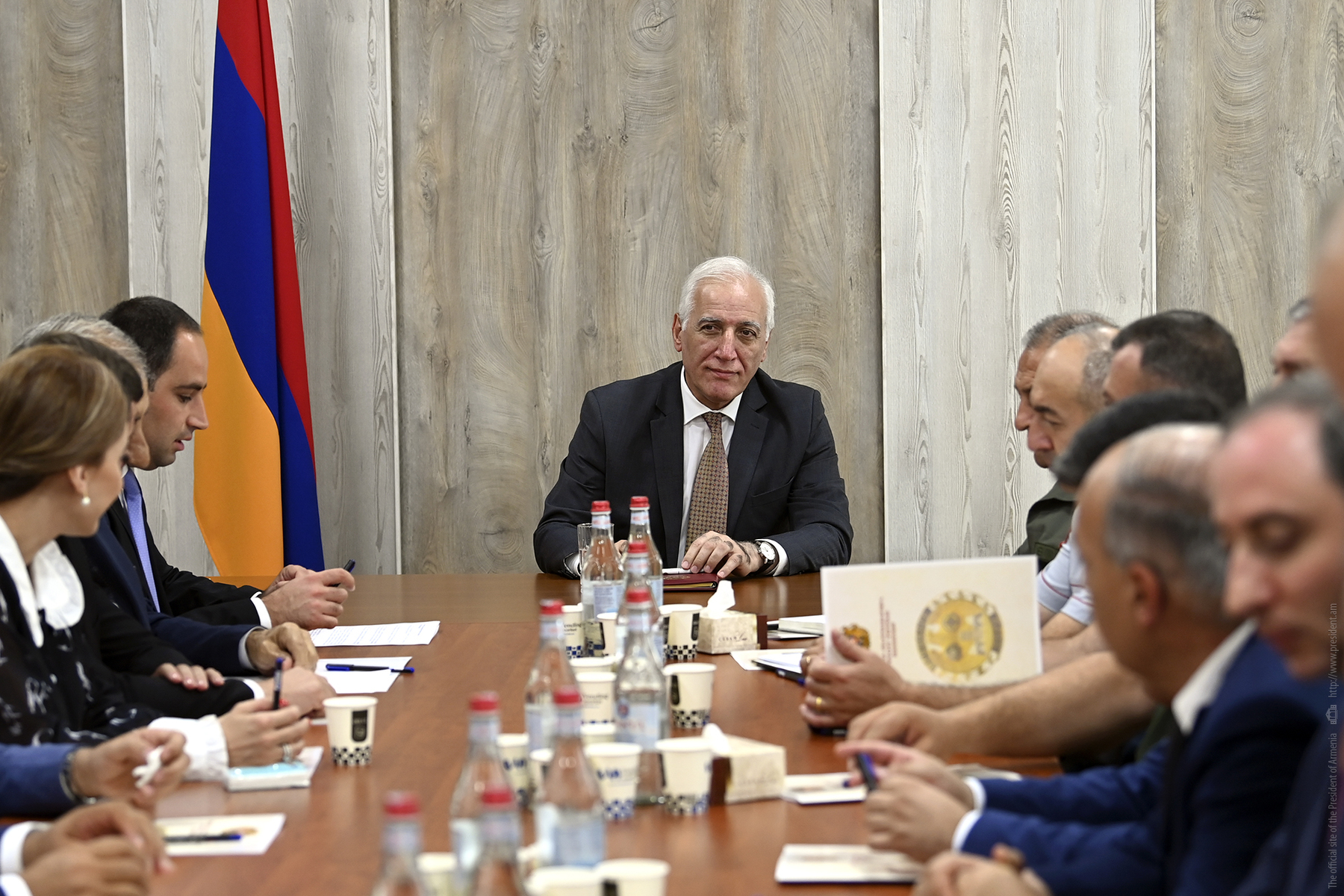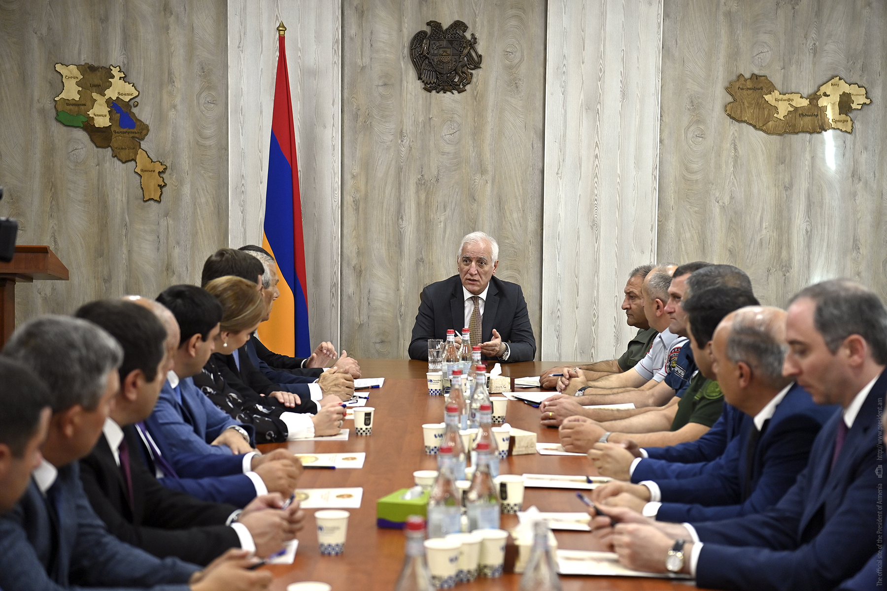 Հանդիպման ընթացքում նախագահ Վահագն Խաչատուրյանը ներկաներին մանրամասներ է հայտնել վերջին շրջանում երկրի պաշտպանունակության բարձրացման ուղղությամբ տարվող աշխատանքների մասին:
