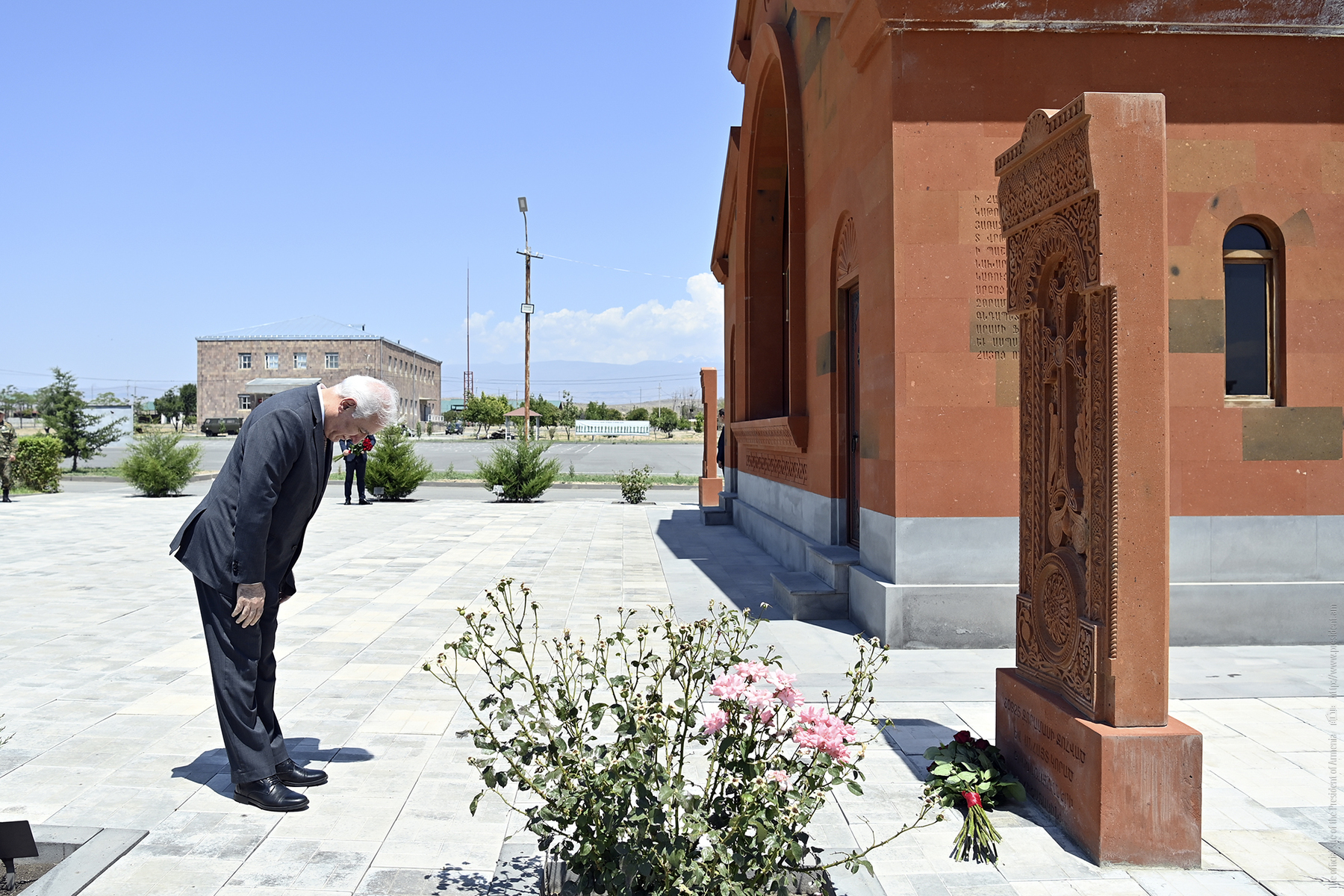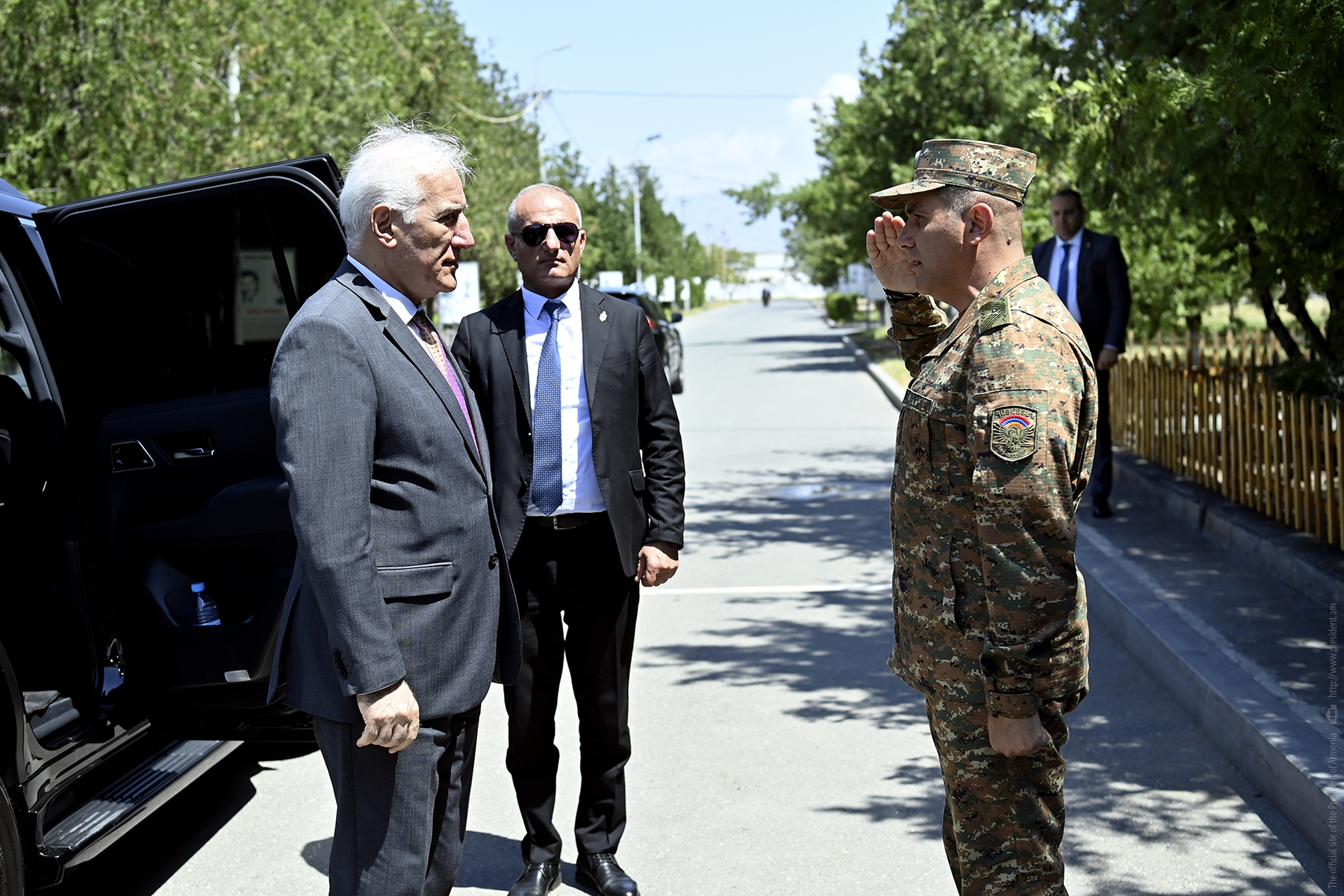 Արմավիրի մարզ կատարած այցի շրջանակում Հանրապետության նախագահ Վահագն Խաչատուրյանն այցելել է Արմավիր քաղաքում տեղակայված ՊՆ զորամասերից մեկը: