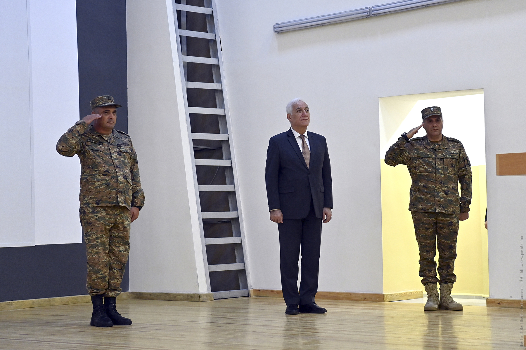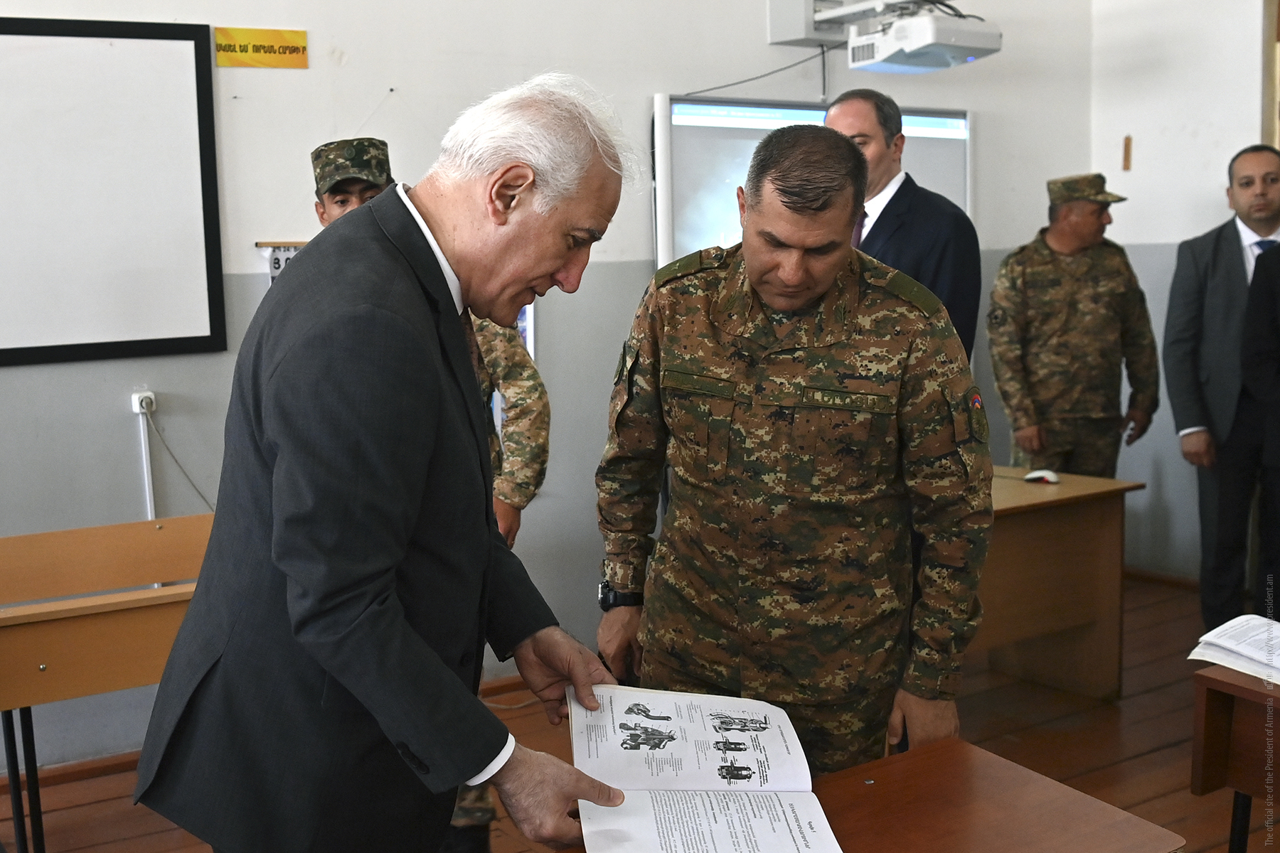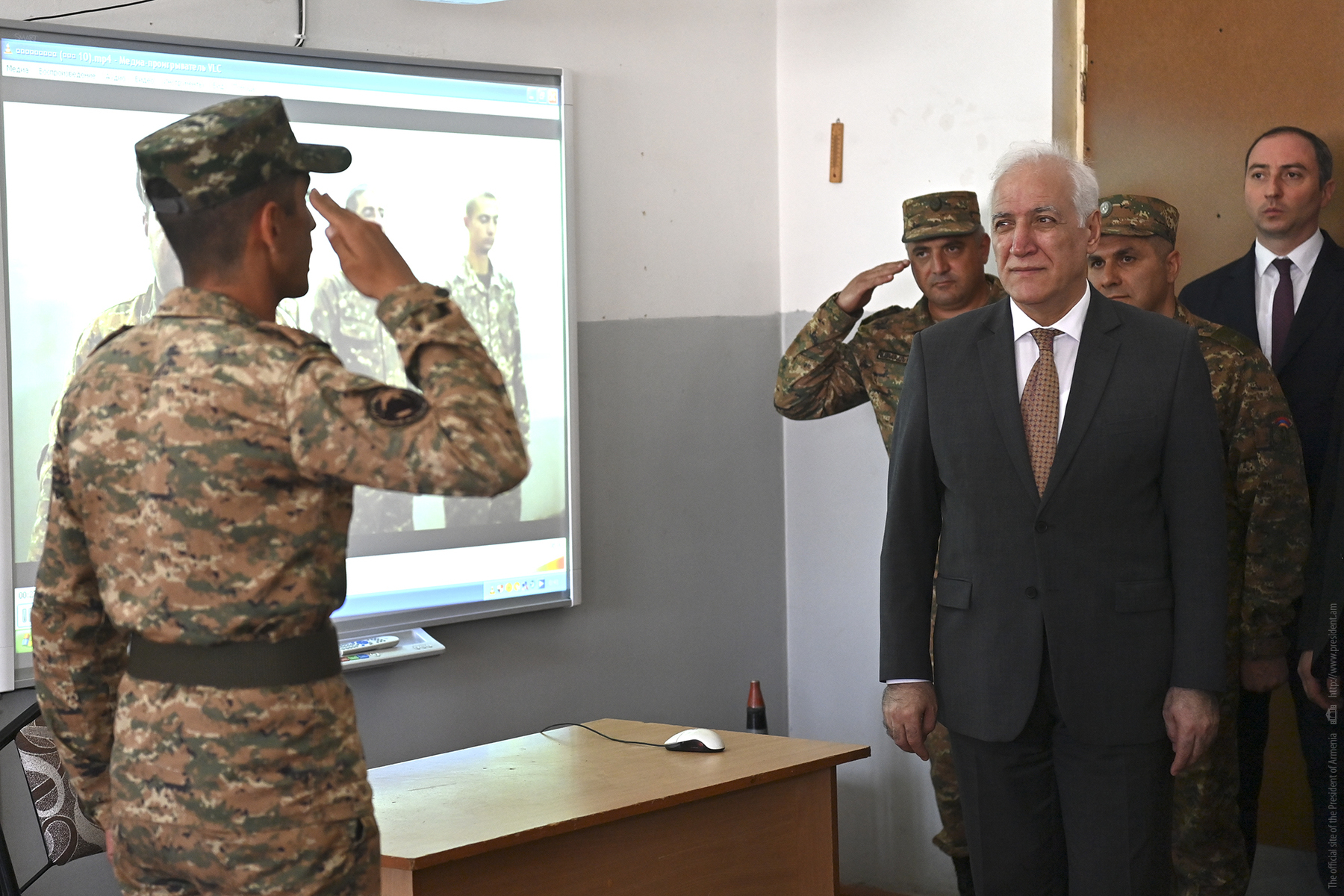 Այցի ընթացքում Հանրապետության նախագահը շրջել է զորամասում, ծանոթացել զինծառայողների սննդին, կեցության, ժամանցի և ուսումնական գործընթացի իրականացման պայմաններին:
