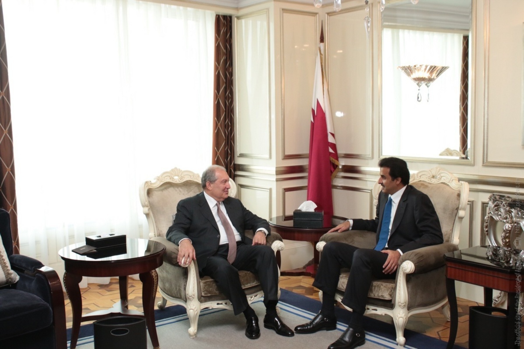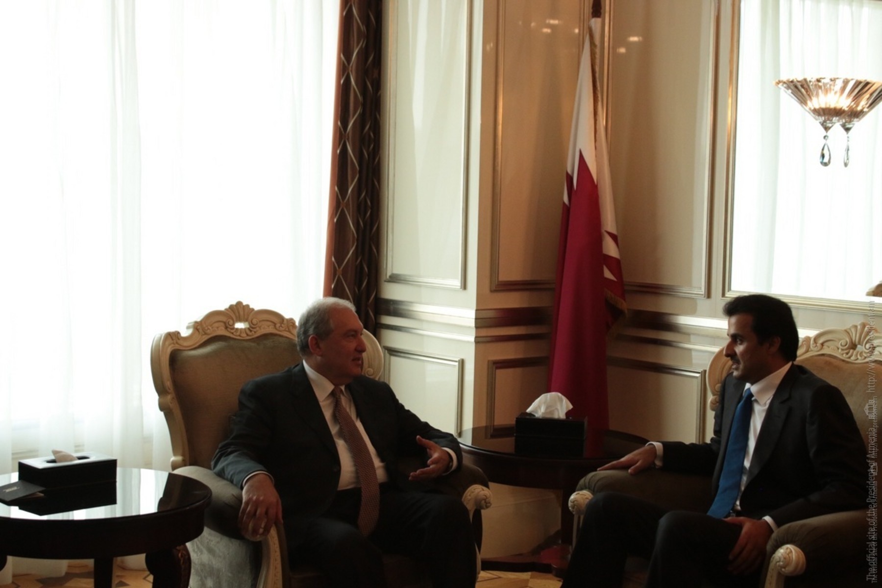 Ջերմ ու անմիջական զրույցի ընթացքում Հայաստանի նախագահը եւ Կատարի էմիրը քննարկել են մեր երկրում ներդրումային ծրագրեր իրագործելու հնարավորությունները։ Նախագահ Սարգսյանը ներկայացրել է Հայաստանի մրցակցային առավելությունները, ներդրումներ կատարելու գրավչությունն ու բիզնես միջավայրի բարելավման ուղղությամբ քայլերը։